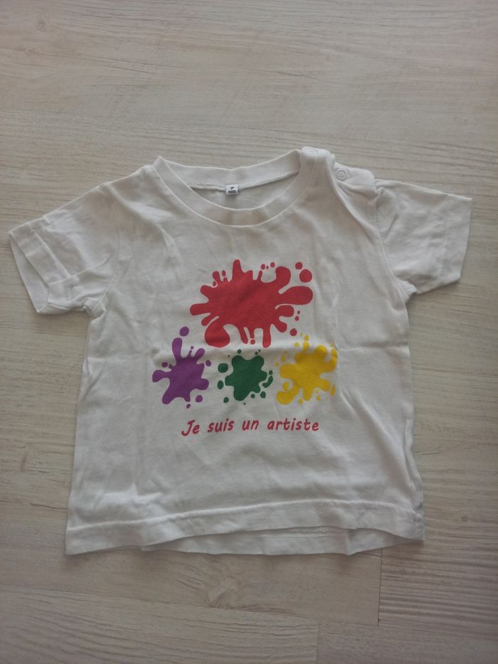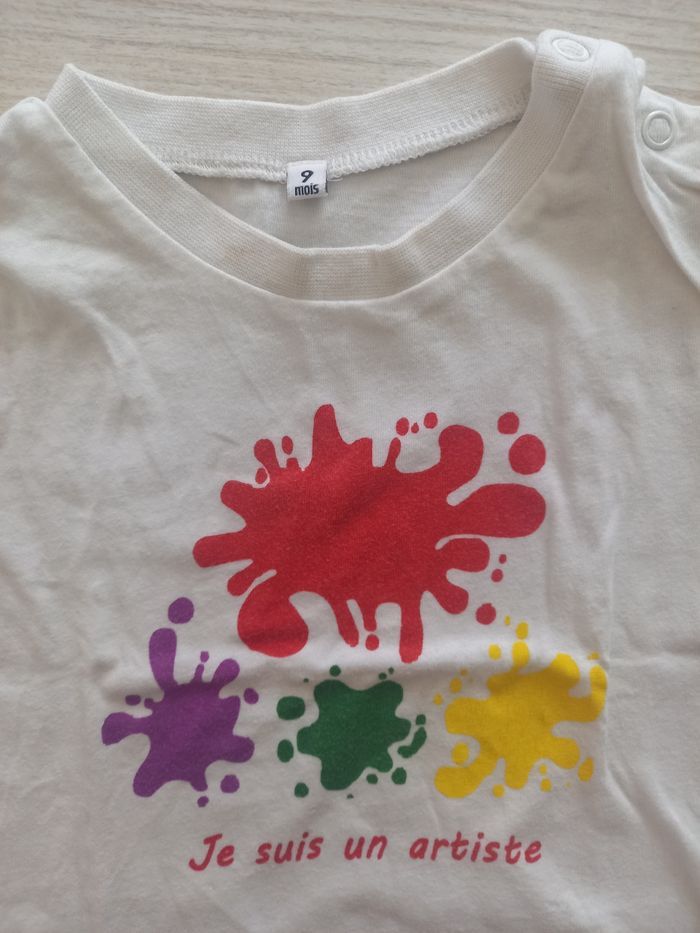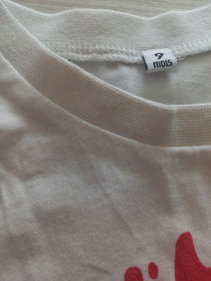 T-shirt pour garçon taille 9 mois Taché au col et derrière mais ça ne se voit pas beaucoup