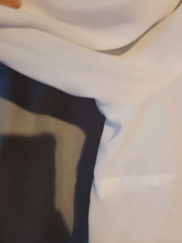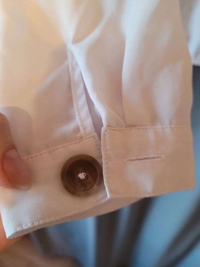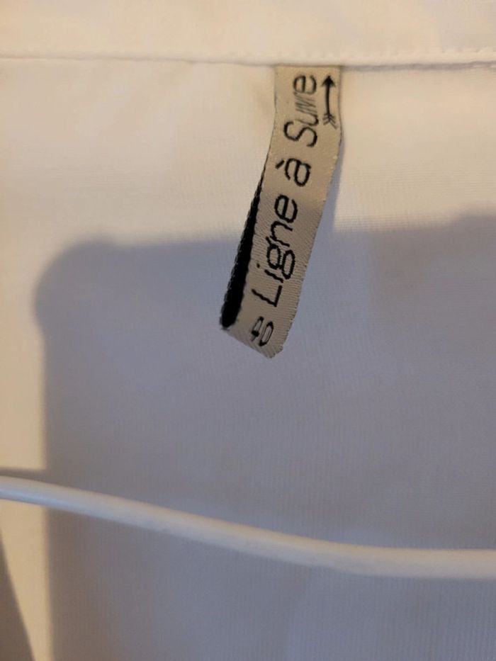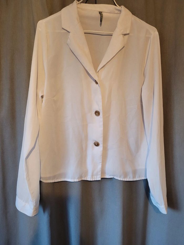 Chemisier léger, gris boutons, état neuf, au niveau de la transparence si vous avez un sous vêtement couleur chair il ne se verra pas.