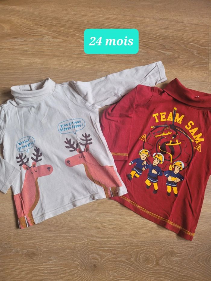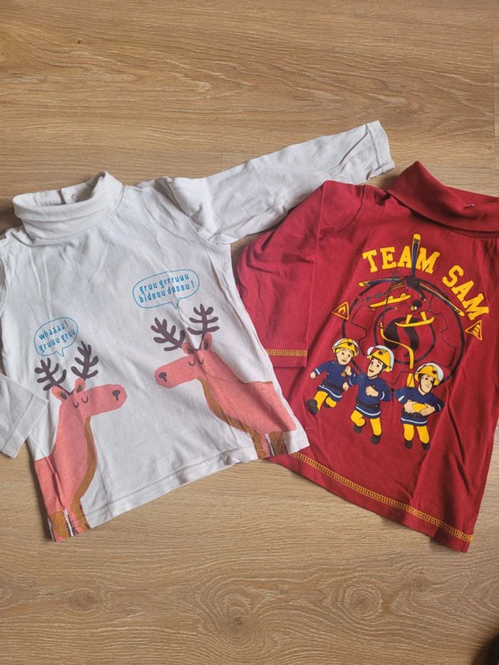 Lot de 2 tee-shirt manches longues col roulé. 1 motif renne et l'autre sam le pompier. État neuf