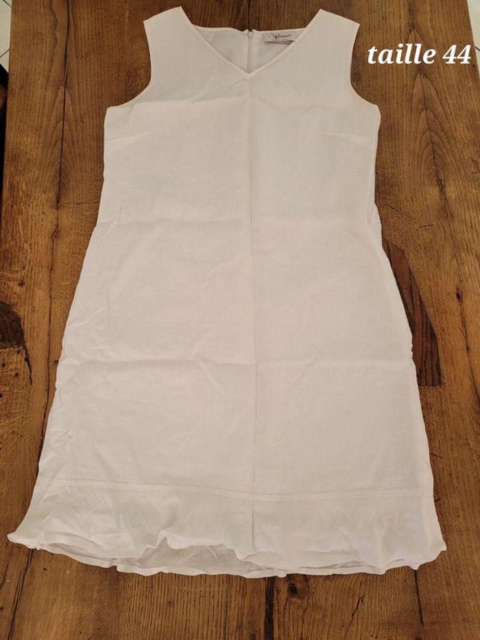 Robe lin/coton entier doublée, parfait état sauf déchirure doublure au niveau de l'étiquette voir photo.
