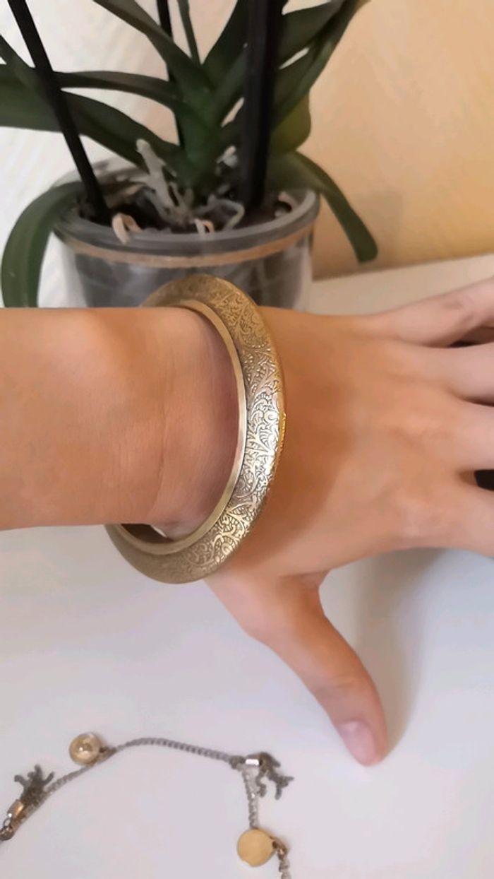 Artisanal, gravures fines style oriental. Ce nettoie très simplement avec produit ou lingette pour bijoux.