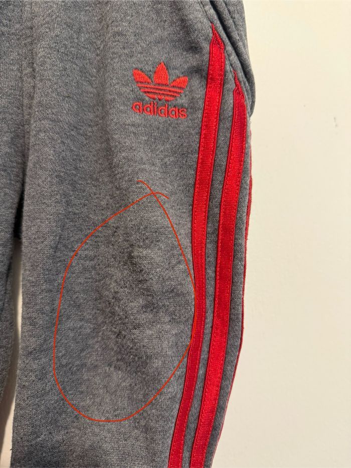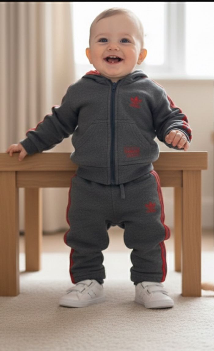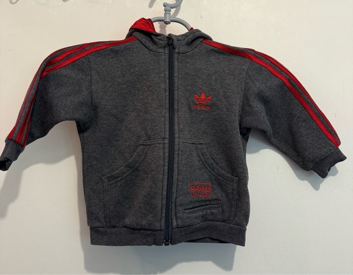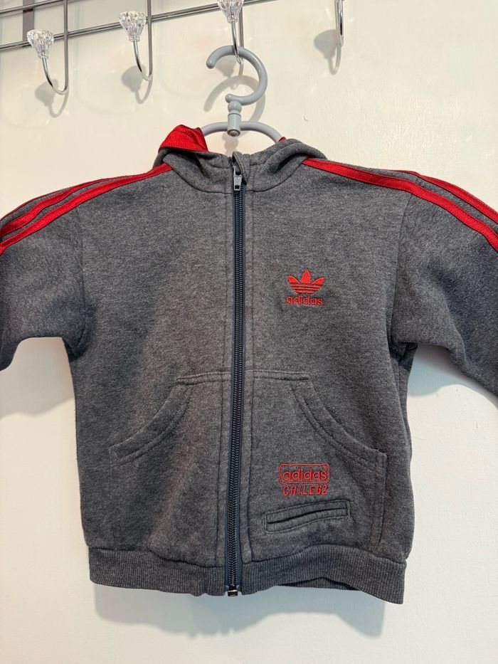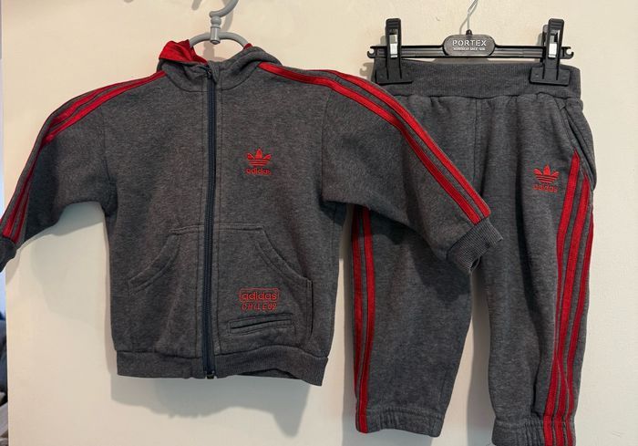 🧸 Survêtement bébé Adidas Chile 62 – 12/18 mois (80 cm). Idéal pour un look sport et confortable au quotidien ! 👕 Marque : Adidas 👟 Modèle : Chile 62 📏 Taille : 80 cm – 12/18 mois 🎨 Couleur : gris foncé avec bandes rouges 🧥 Ensemble : veste zippée + pantalon ⭐ Logo Adidas brodé ⚠️ À noter : une légère trace d’usure sur le côté gauche du pantalon, très peu visible (voir photo).