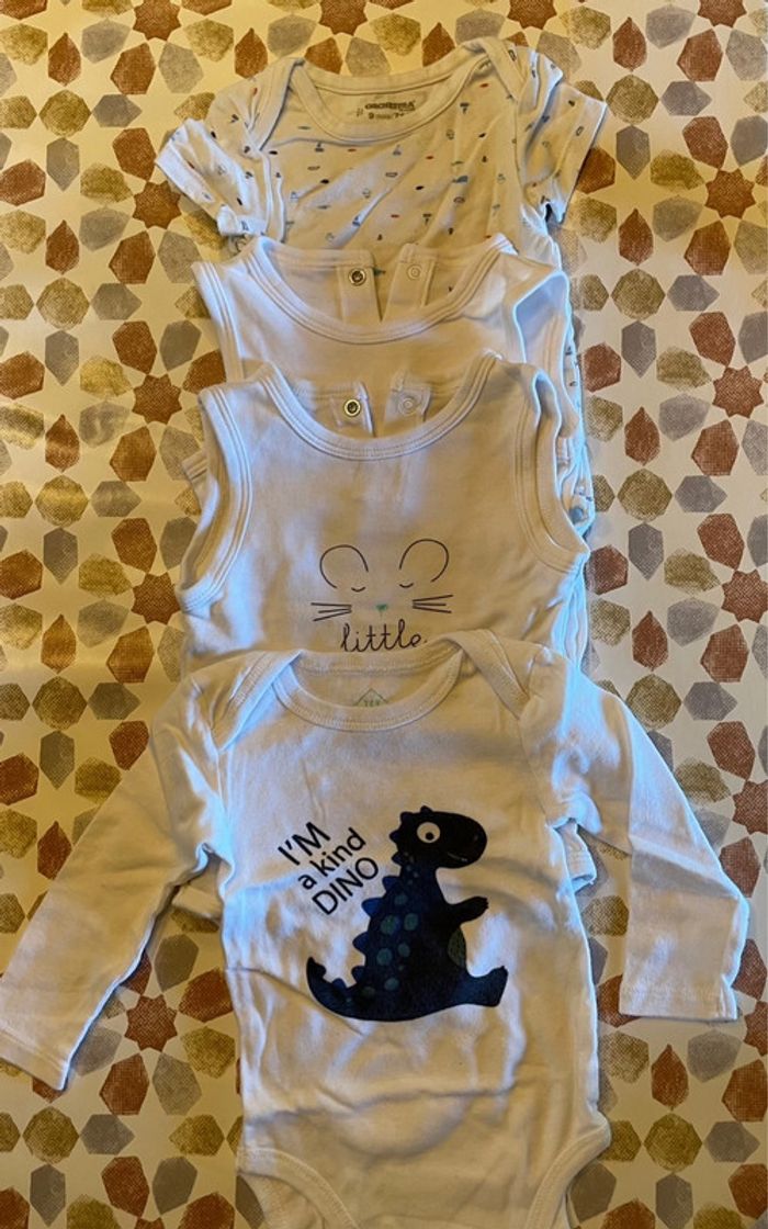 4 bodies ( 1 manches courtes, 1 manches longues et 2 débardeurs). Marque Orchestra, Verbaudet et TEX. N’hésitez pas à jeter un œil à mon dressing, des prix de lots sont appliqués 😊