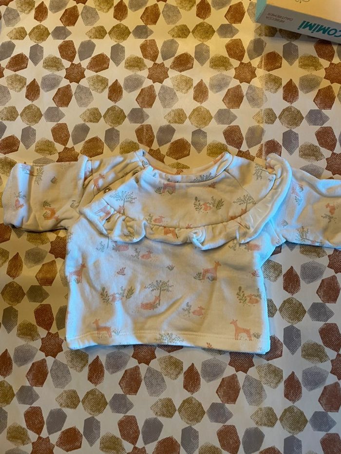 Pull pour petite fille taille 1 mois. S’attache par devant, ce qui est bien pratique ! Mis qu’une fois. Marque Gémo. N’hésitez pas à jeter un œil à mon dressing, des prix de lots sont appliqués 😊
