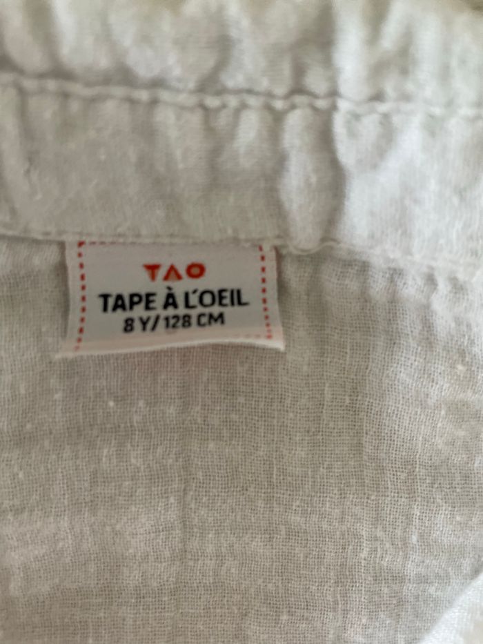 Chemise tape à l’œil en mousseline blanche. Peu portée, très bon état