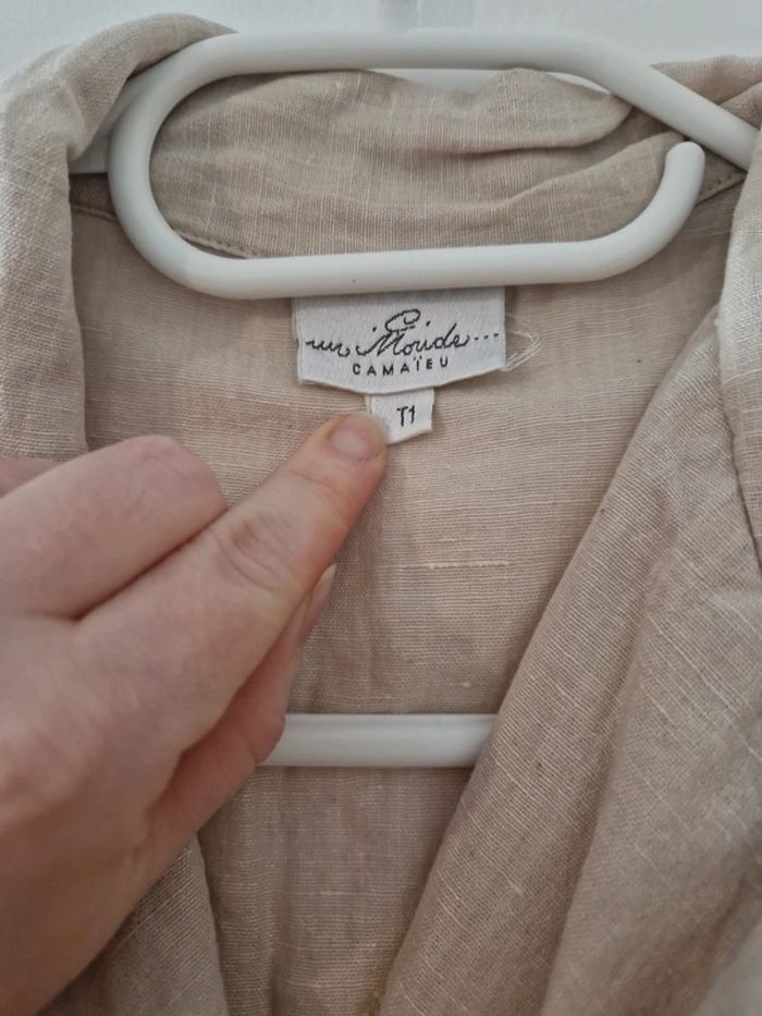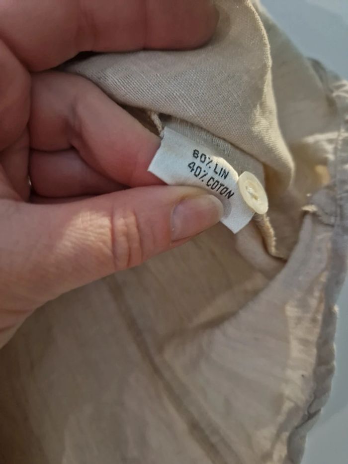 Chemisier femme été débardeur manche courte beige lin coton TBE T38 camaïeu