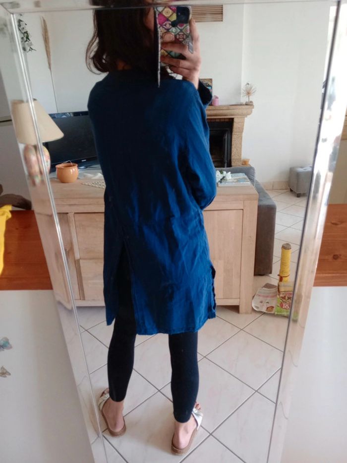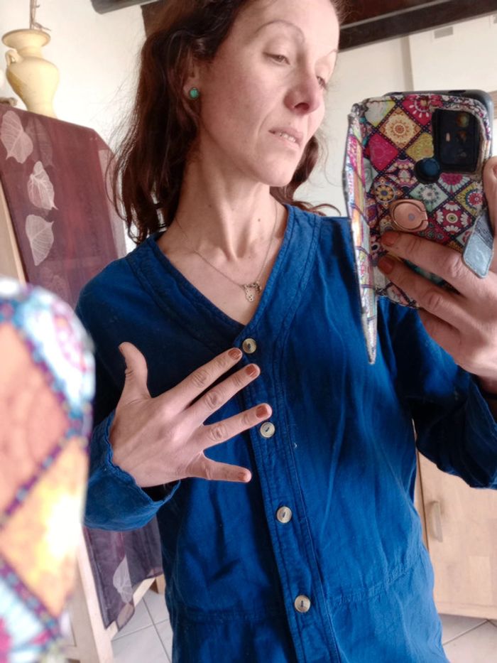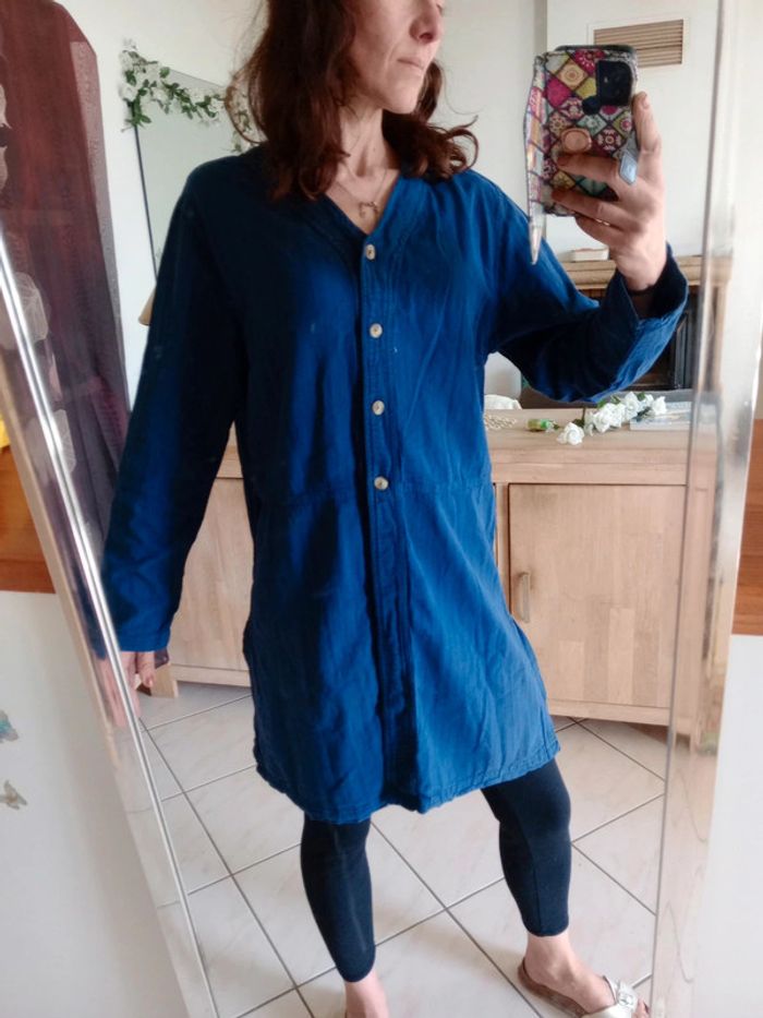 Liquette longue " hand made ecuador" Présence de 4 boutons , col v Fendue de chaque côté ainsi qu'à l'arrière N'est pas tout lisse Peut-être portée avec une ceinture Un bouton en plus à l'intérieur 😉 Fait main Équateur #carineleray_femme_42