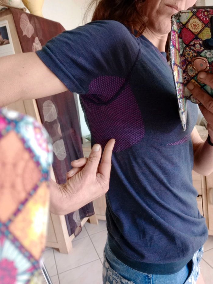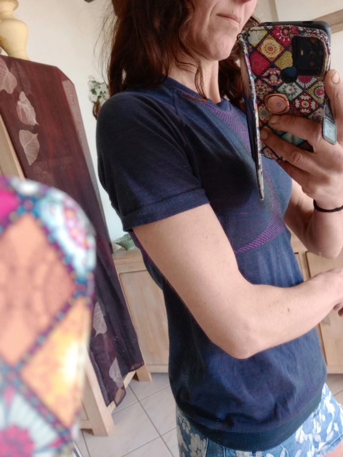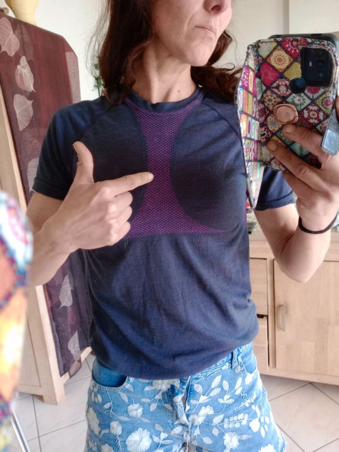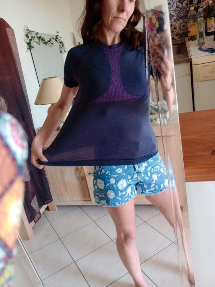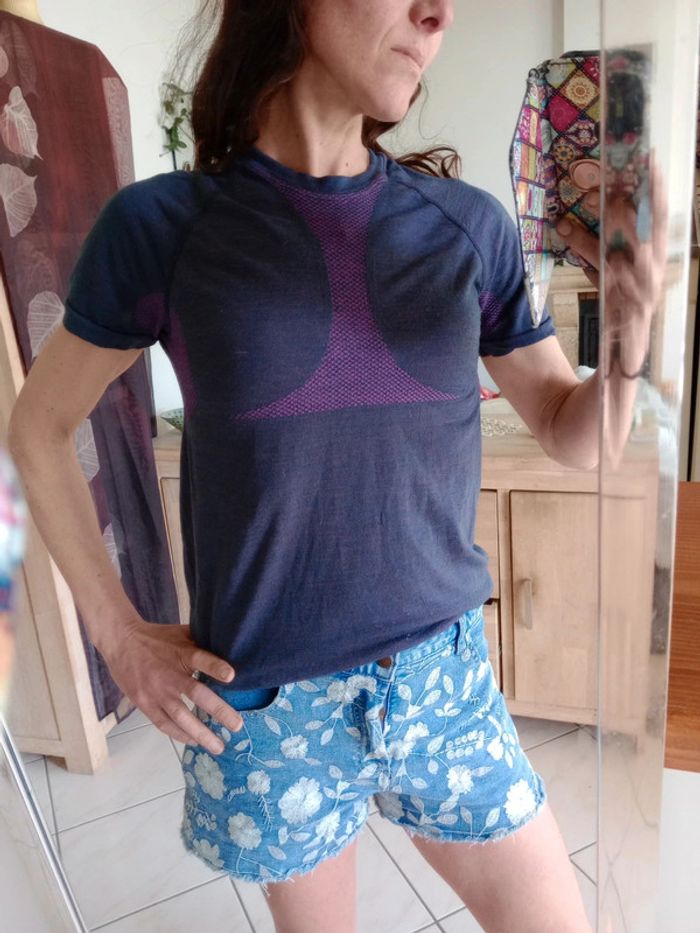 Ultra confort T-shirt avec de nombreux empiècements pour une évacuation de la chaleur au niveau des aisselles du dos et de la poitrine Un micro trou voir dernière photo 58 % polyester 42 % wool Est fortement étirable T-shirt de trekking #carineleray_femme_40