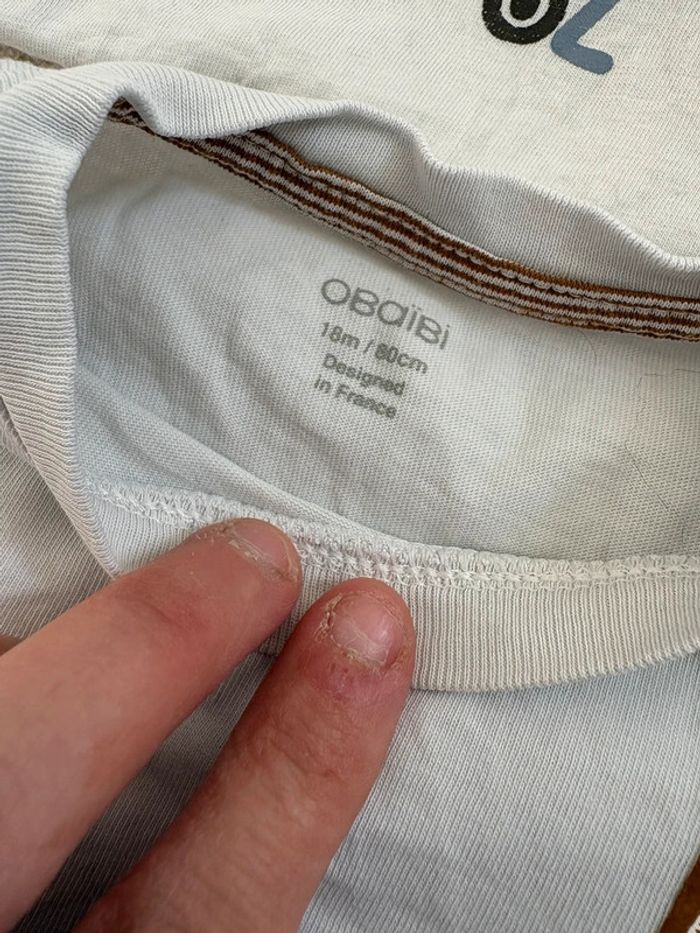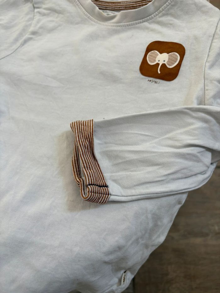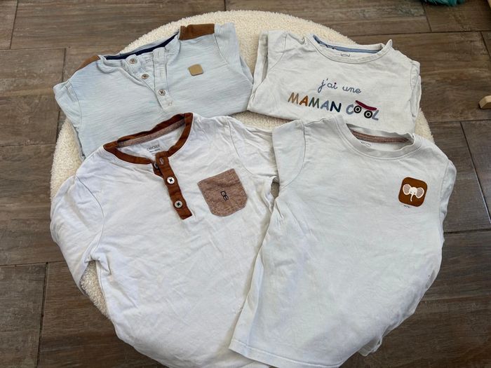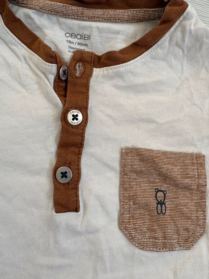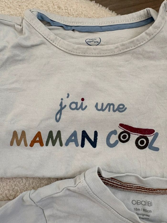 #audette80_garçon18mois 4 tshirts manches longues (dont 1 donner car tacher et couleur passer) 3 obaibi collection actuelle Et un mot d’enfant Porter plusieurs fois mais sans tache ni trou 18 mois