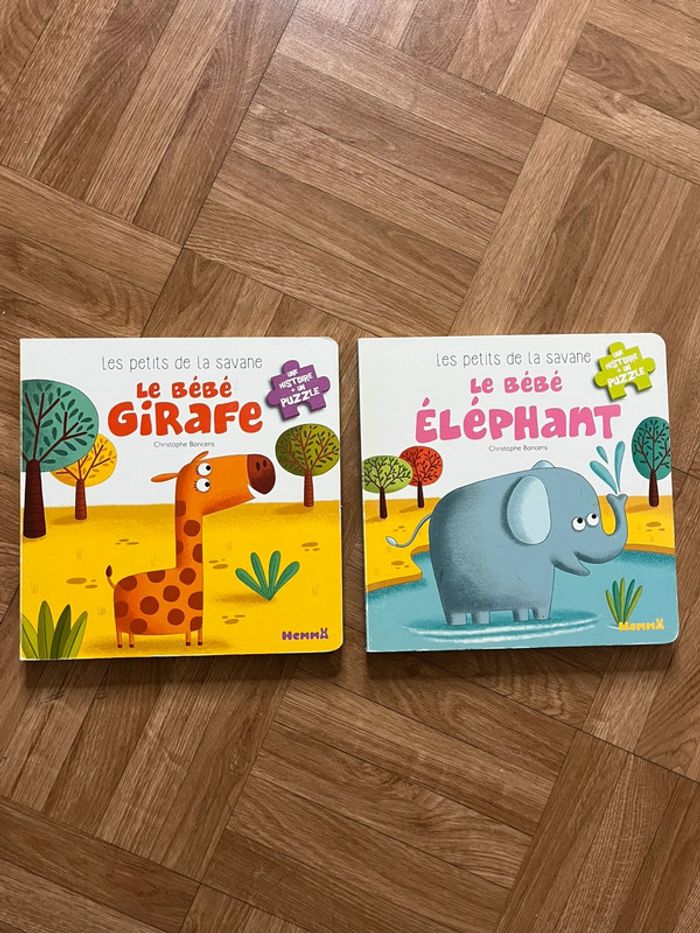 - Le bébé Girafe - Le bébé Éléphant Une histoire + un puzzle En très bon état Possibilité de créer un lot pour bénéficier d’une réduction Annonce en ligne = article disponible ✅ 📦 Envoi rapide et soigné 🚀