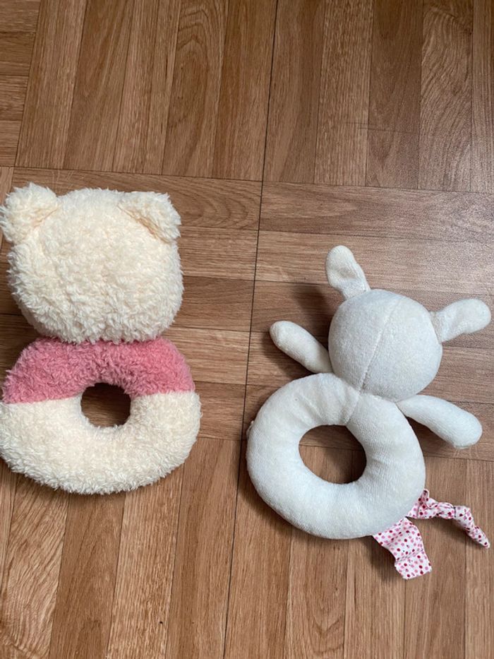 Un lot comprenant une peluche doudou hochet Winnie l'Ourson de Disney ainsi qu'un lapin en peluche offert. La peluche Winnie est douce et moelleuse, parfaite pour câliner les tout-petits. Le hochet intégré permet de stimuler leur éveil sonore. Le lapin en peluche est un cadeau supplémentaire qui fera sûrement le bonheur de votre enfant. Ce lot est en excellent état, très peu utilisé. C'est une belle opportunité d'offrir un jouet de qualité à votre bambin à un prix avantageux.
