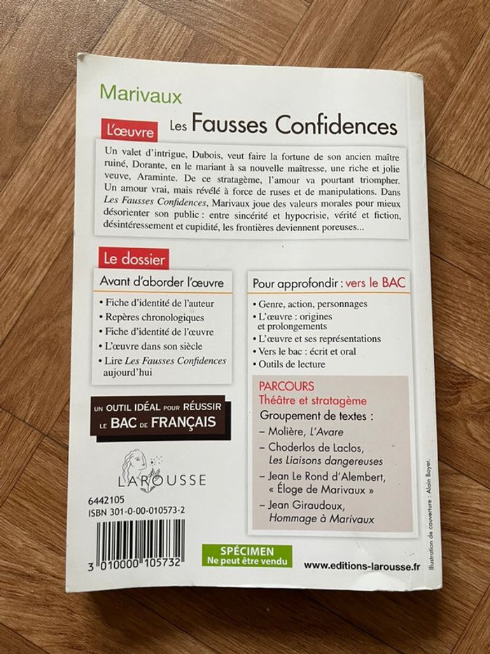 Livre Larousse les fausse confidences Marivaux Spécial Nouveau BAC