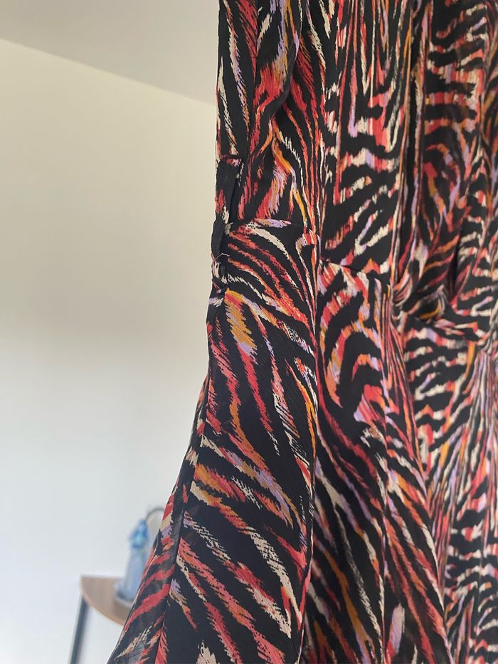En très bon état, peu portée! Il y a une petite ceinture qui vient avec (même motif que la robe)