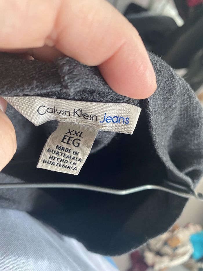 Pull CK en très bon état avec une capuche à l’arrière