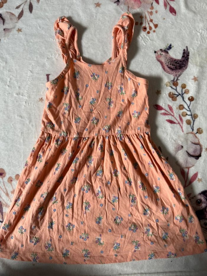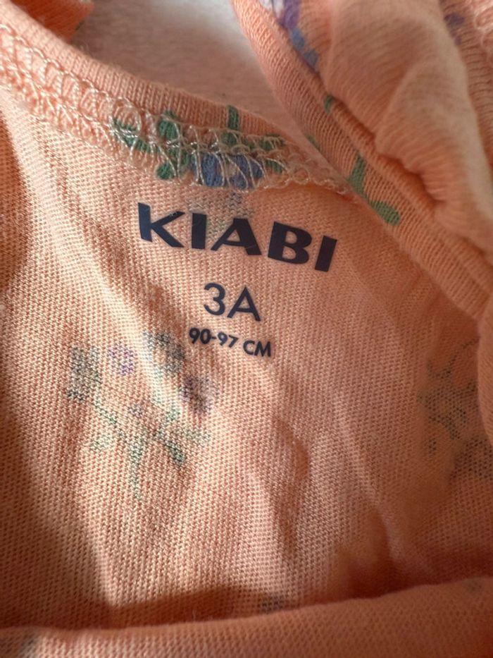 Adorable robe couleur abricot 🍑 avec de jolis motifs fleuris 🌿🌺. Un indispensable pour un été tout en douceur ! ☀️💕 Taille 3 ans (90/97 cm), marque Kiabi.
