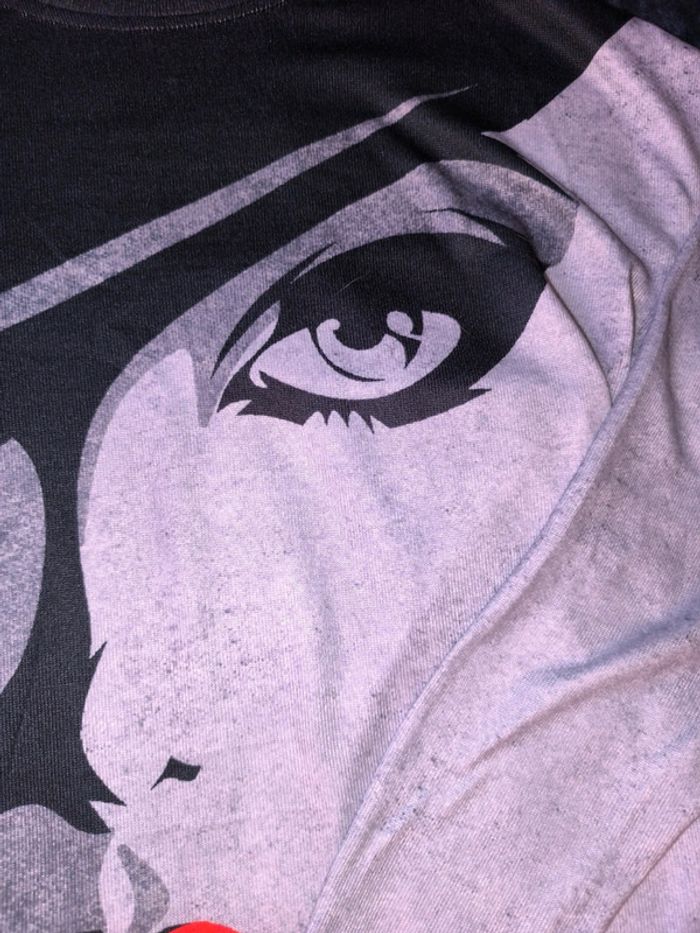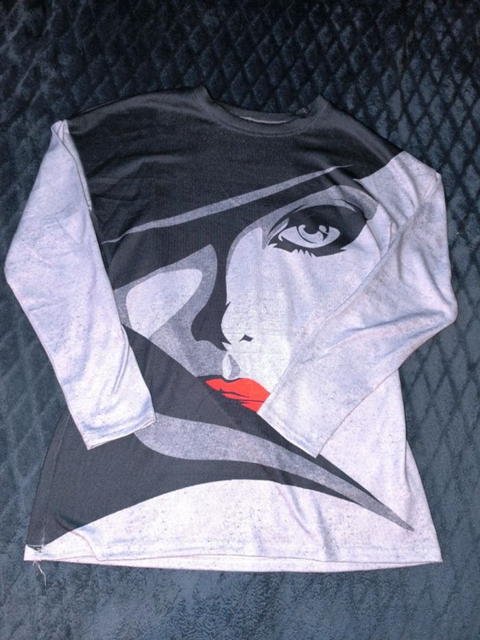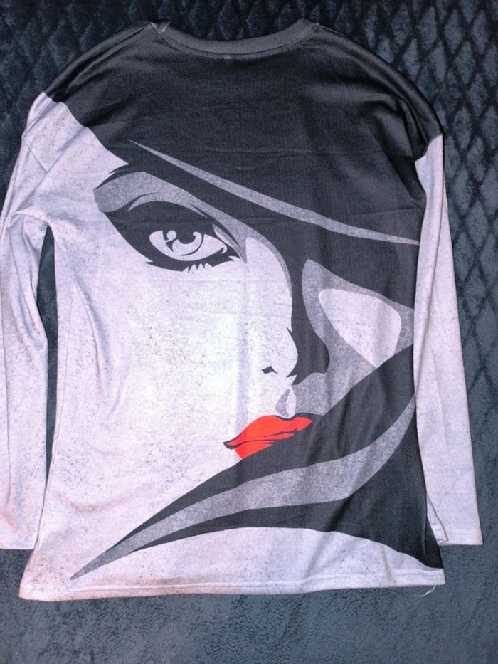 Pull fin, imprimé visage devant et au dos en parfait état, pas de trace d'usure.