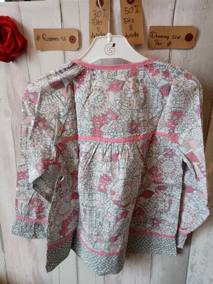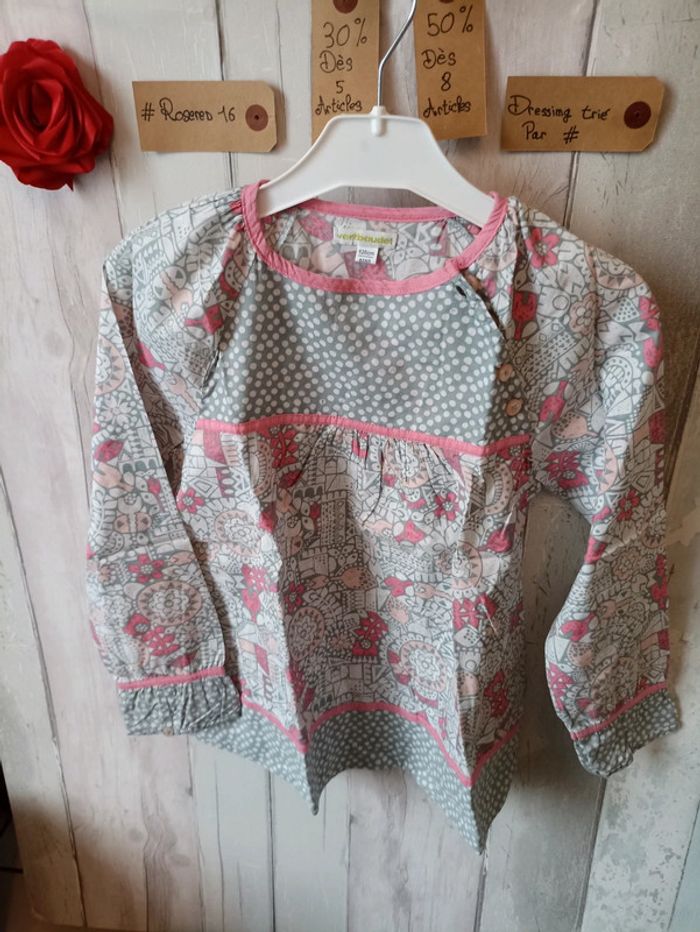 Tunique à manches longues avec motifs pois et fleurs, de marque Vertbaudet en 8 ans. #8arosered16 #rosered16fille