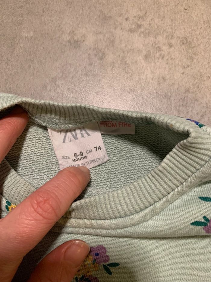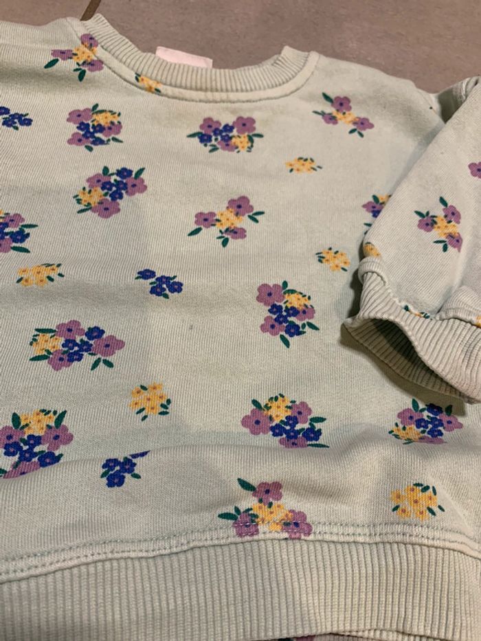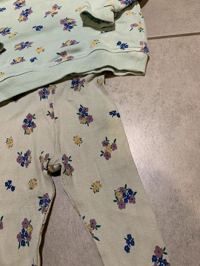 Ensemble taille 6-9 mois État satisfaisant Quelques taches + différence de couleur entre le pull et legging