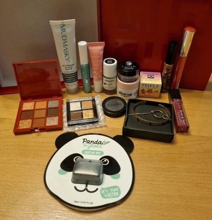 Lot de maquillage neuf * lip topper rose translucide : 21€ - SO SUSAN * exfoliant pour les lèvres: 17,45€ - TRIFLE COSMETIC * fards à paupières hello beautiful : 18€ * masque peel-of charbon : 8€ - PANDA & GLOBE * gloss rouge cougard - SEPHORA * palette pour les yeux - STYL * ombre à paillette firework : SEPHORA * highlighter : 12 € - GLOW UP * masque 3 en 1 : 24 € - MUDMASKY * vernis à ongles- nailmatix * gloss lèvres et paupière - MELUSINE * contour des yeux - KADALYS * gloss pour les yeux- LUNA Prix en magasin plus de 100€, je fais le lot à 55€. Tout est neuf. #lindsaybetizeaubeauté