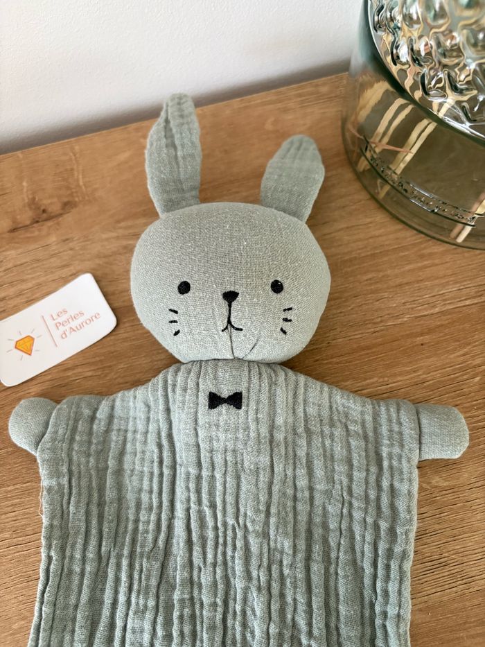 Doudou lange lapin vert noeud papillon noir - photo numéro 8
