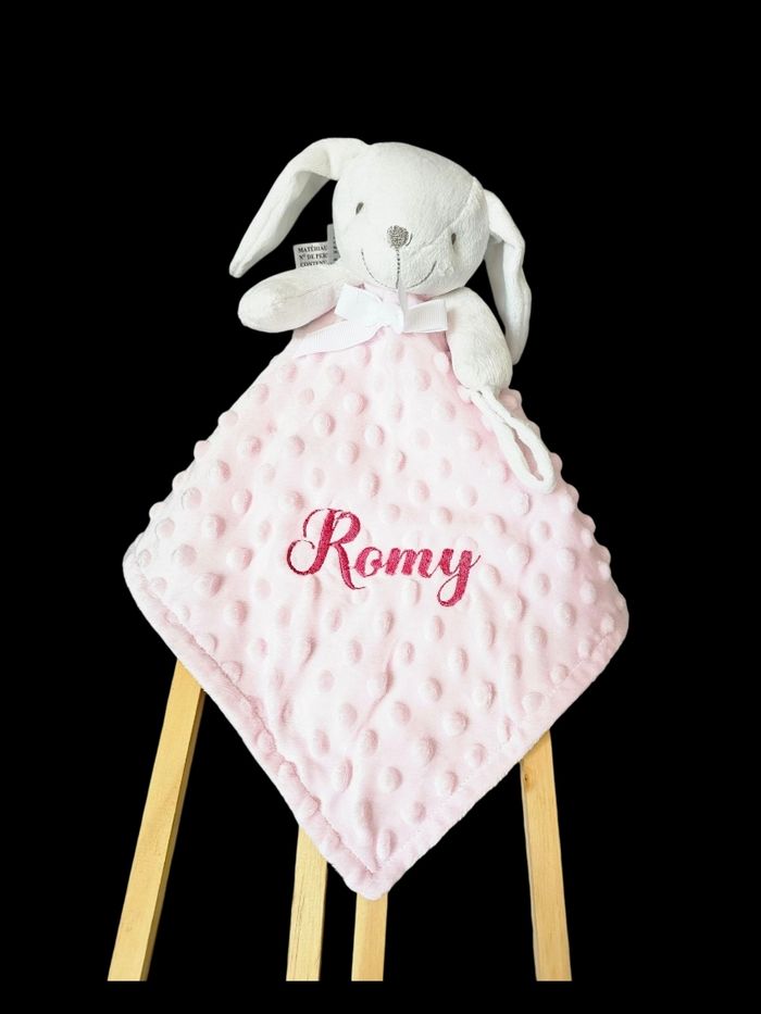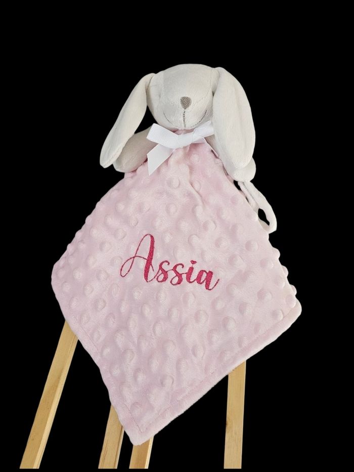 Doudou personnalisé Prénom brodé Écriture à couleur à choisir