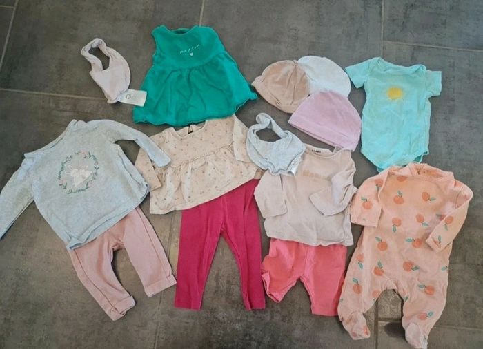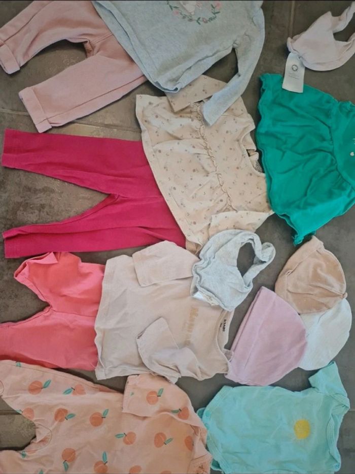 Lot de vêtements fille taille 3 mois pyjama grenouillère leggings t-shirts bonnets bodie - photo numéro 1