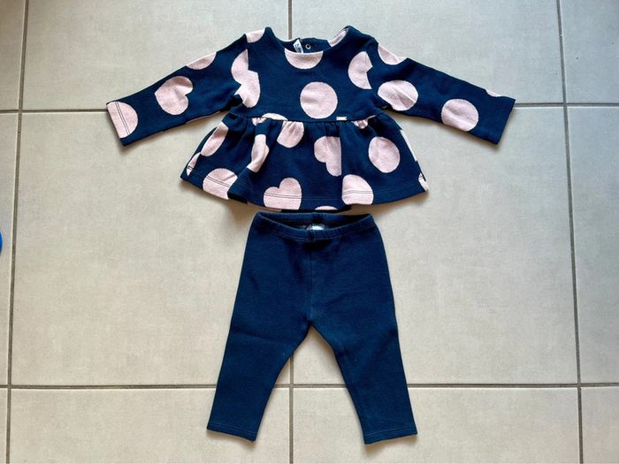 Ensemble en coton composé d’un pull tunique et d’un legging, taille 9 mois, très peu porté, en très bon état, aucune tâche ni trou