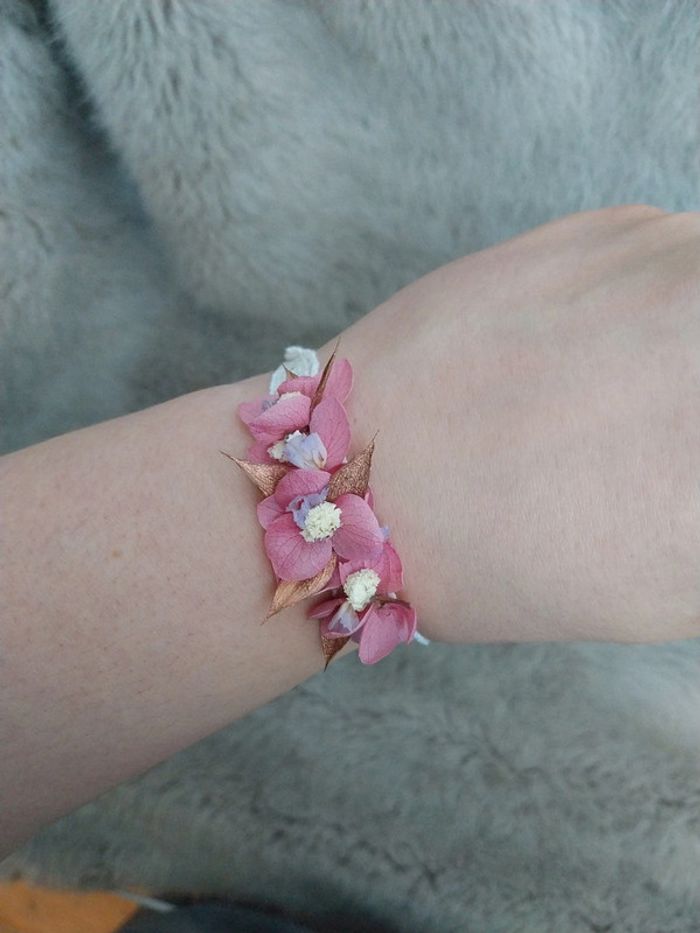 Découvrez notre délicat bracelet ruban orné de fleurs séchées, une pièce unique qui incarne l'élégance naturelle et le charme intemporel. Chaque bracelet est soigneusement confectionné pour capturer la beauté éphémère des fleurs, transformant un simple accessoire en un bijou poétique. Idéal pour ajouter une touche florale à toute tenue. 28cm