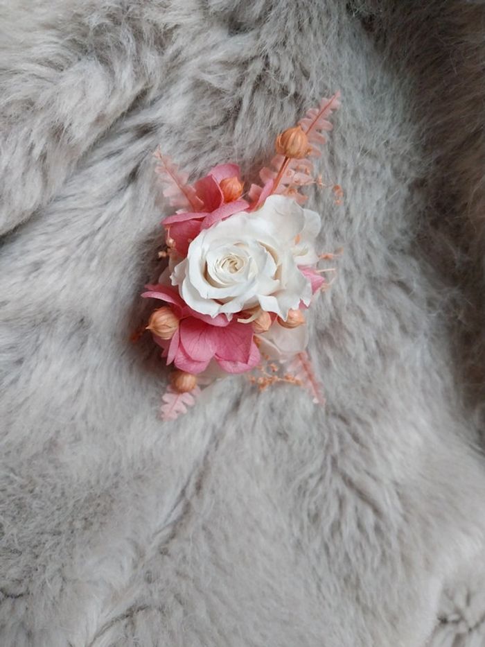 La boutonnière incarne l'élégance champêtre sa rose éternelle délicatement entourée de fleurs séchées. Chaque pièce est créée de manière artisanale pour offrir une touche unique à votre tenue. Parfaite pour une occasion spéciale, elle combine romantisme et durabilité en préservant la beauté des fleurs bien au-delà d'un jour. Paraissez inoubliable.