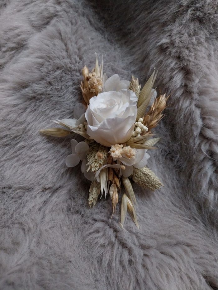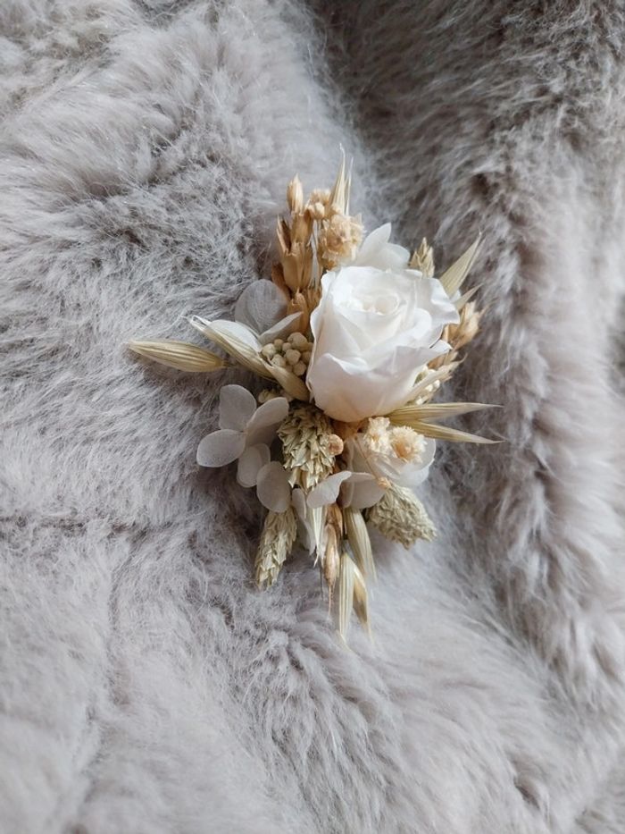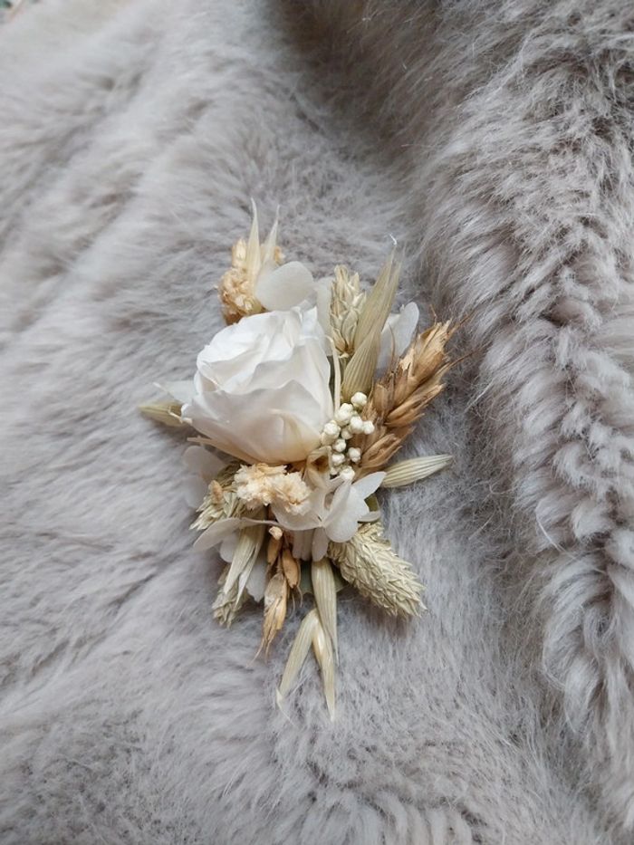 La boutonnière incarne l'élégance champêtre sa rose éternelle délicatement entourée de fleurs séchées. Chaque pièce est créée de manière artisanale pour offrir une touche unique à votre tenue. Parfaite pour une occasion spéciale, elle combine romantisme et durabilité en préservant la beauté des fleurs bien au-delà d'un jour. Paraissez inoubliable.