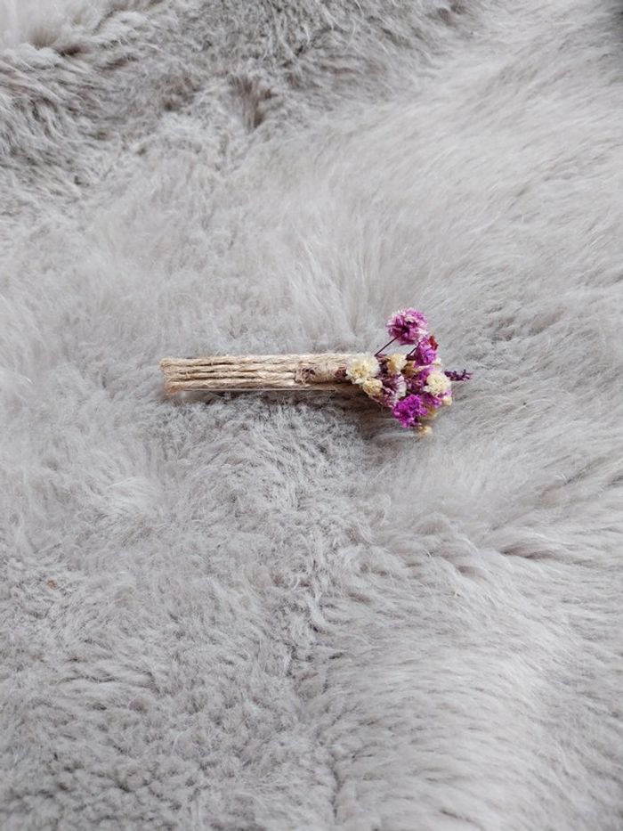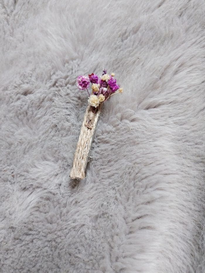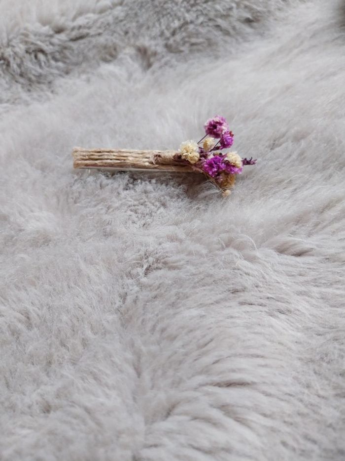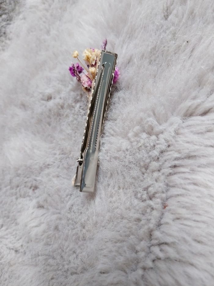 Accessoire cheveux de 8cm ornée de fleur séchée mauve et blanche