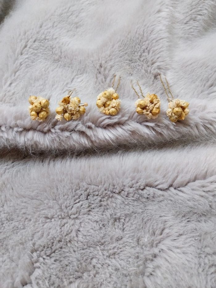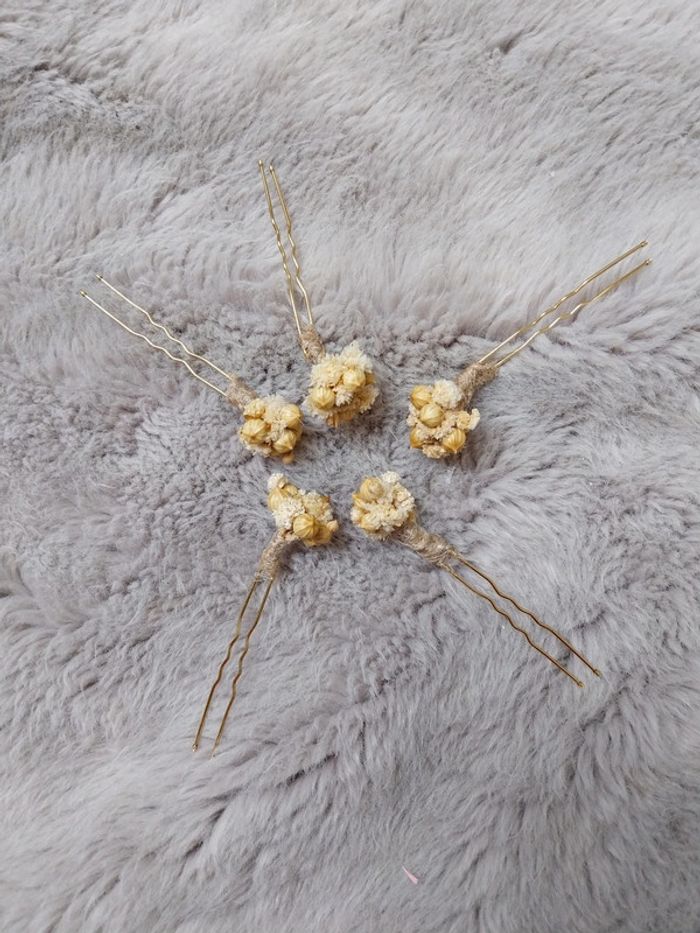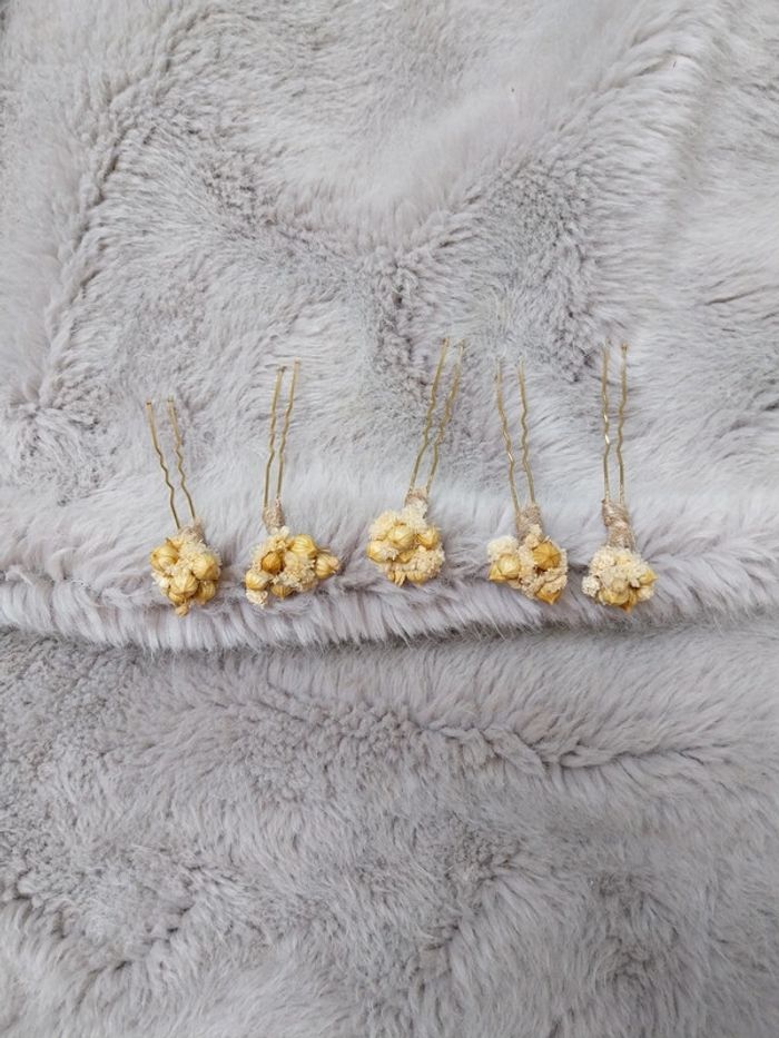 Lot de 5 Piques cheveux en fleurs séchées idéal pour tresses, torsades ou chignons
