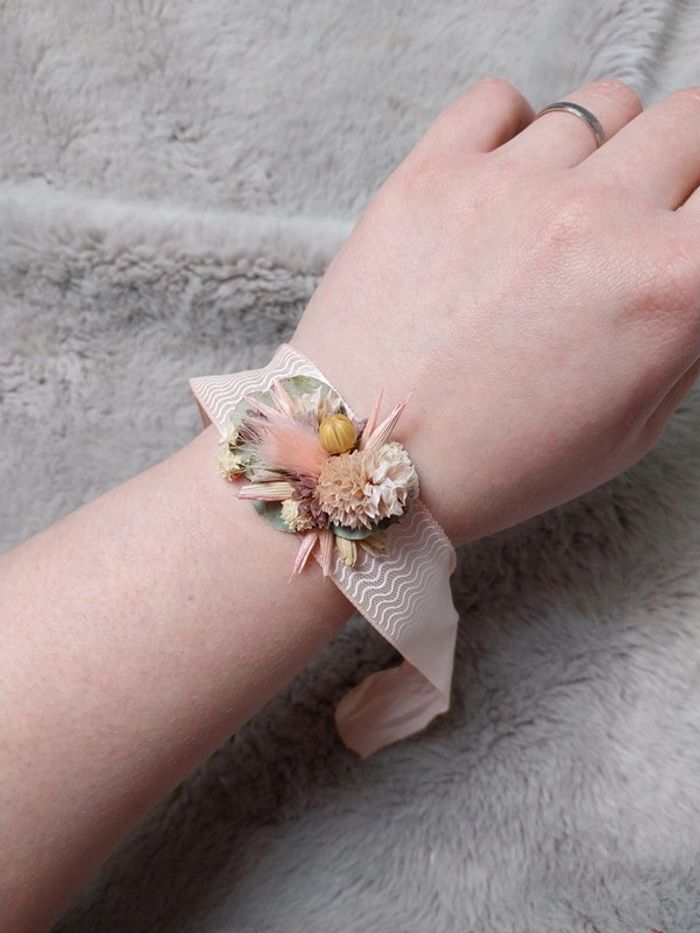 Bracelet ruban accompagné de fleurs séchées 34cm