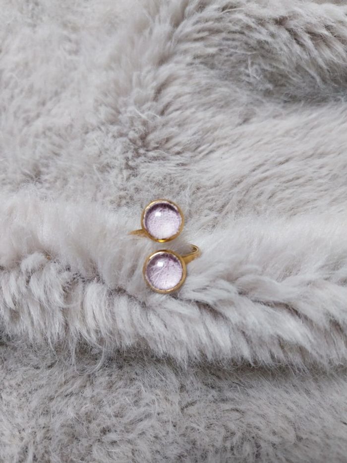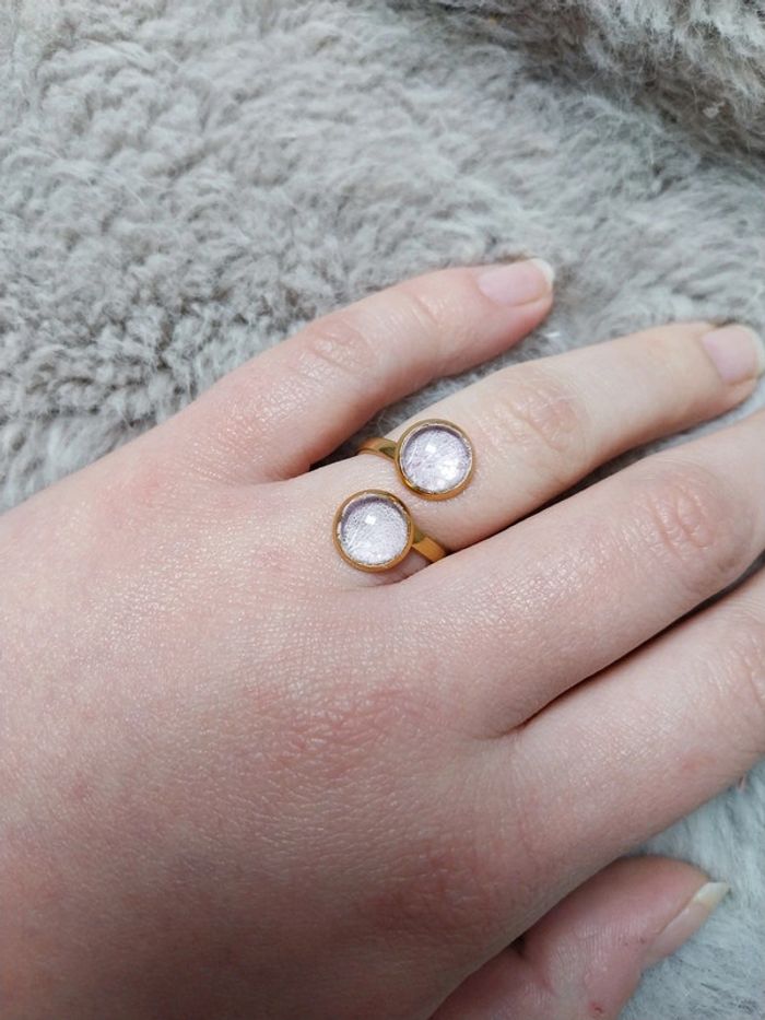 Bague en acier inoxydable ajustable avec des fleurs séchées lilas sous verre