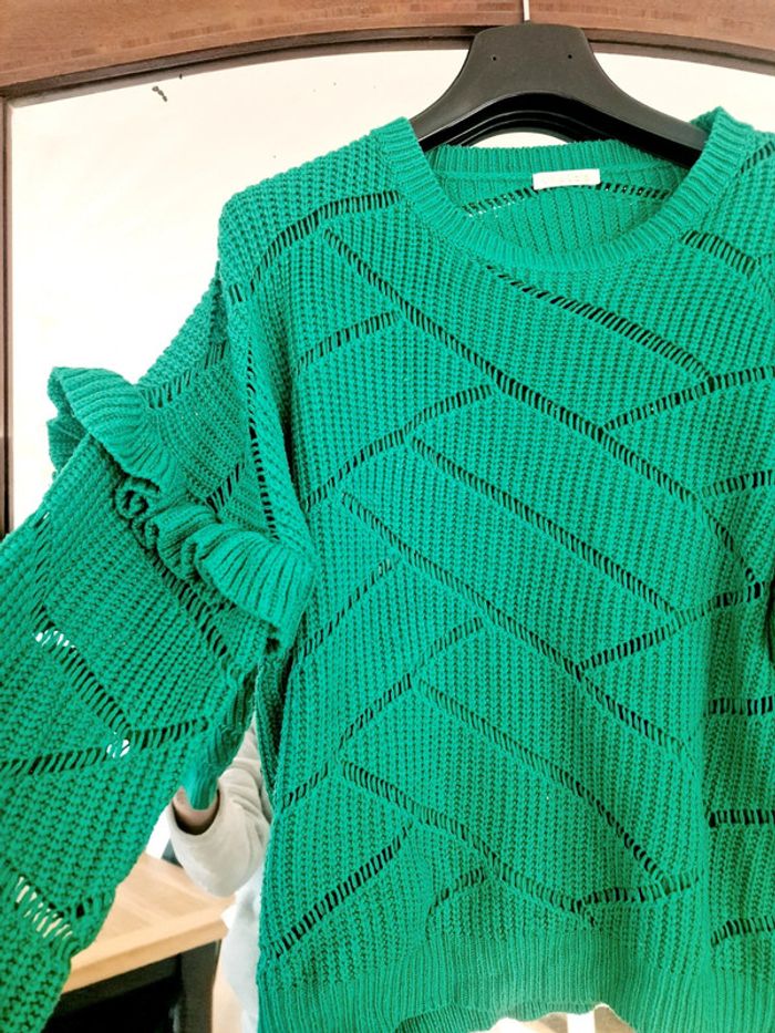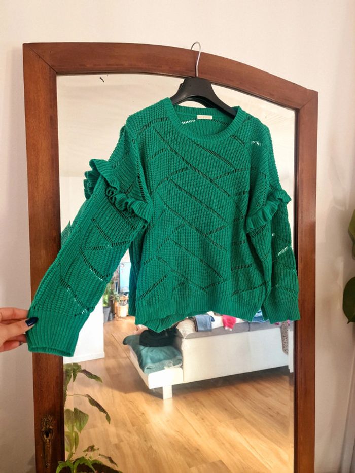 Magnifique pull vert manche froufrou En excellent état
