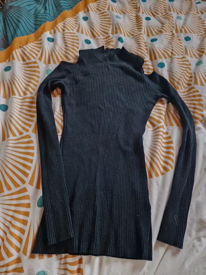 Petit pull noir prêt du corp Épaule dénudé