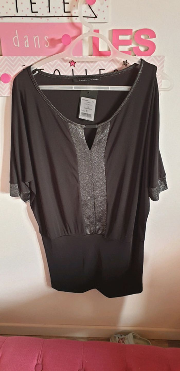 Robe manche chauve sourie Noir argent Neuves Très classe