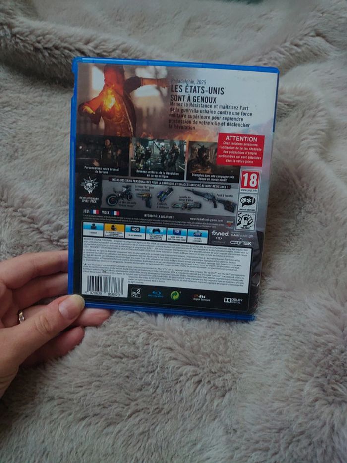 Je propose le jeu Homefront: The Revolution sur PlayStation 4. C'est un jeu d'action-aventure passionnant qui vous plongera dans une révolution contre l'occupation. Le jeu est en excellent état, avec la boîte, le manuel inclus. Que vous soyez un fan de jeux de tir ou d'expériences narratives immersives, Homefront: The Revolution saura vous captiver. N'hésitez pas à me contacter pour plus d'informations ou pour organiser un achat en toute confiance. - Titre : Homefront: The Revolution - Plateforme : PlayStation 4 - Genre : Action-aventure, Tir - Édition : Standard - Langue : Français - Région : Europe - Âge recommandé : 18+