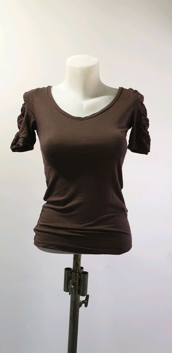 Tee-shirt manche dentelé Marron Taille indiquée 38/40 mais correspond à un 36/38