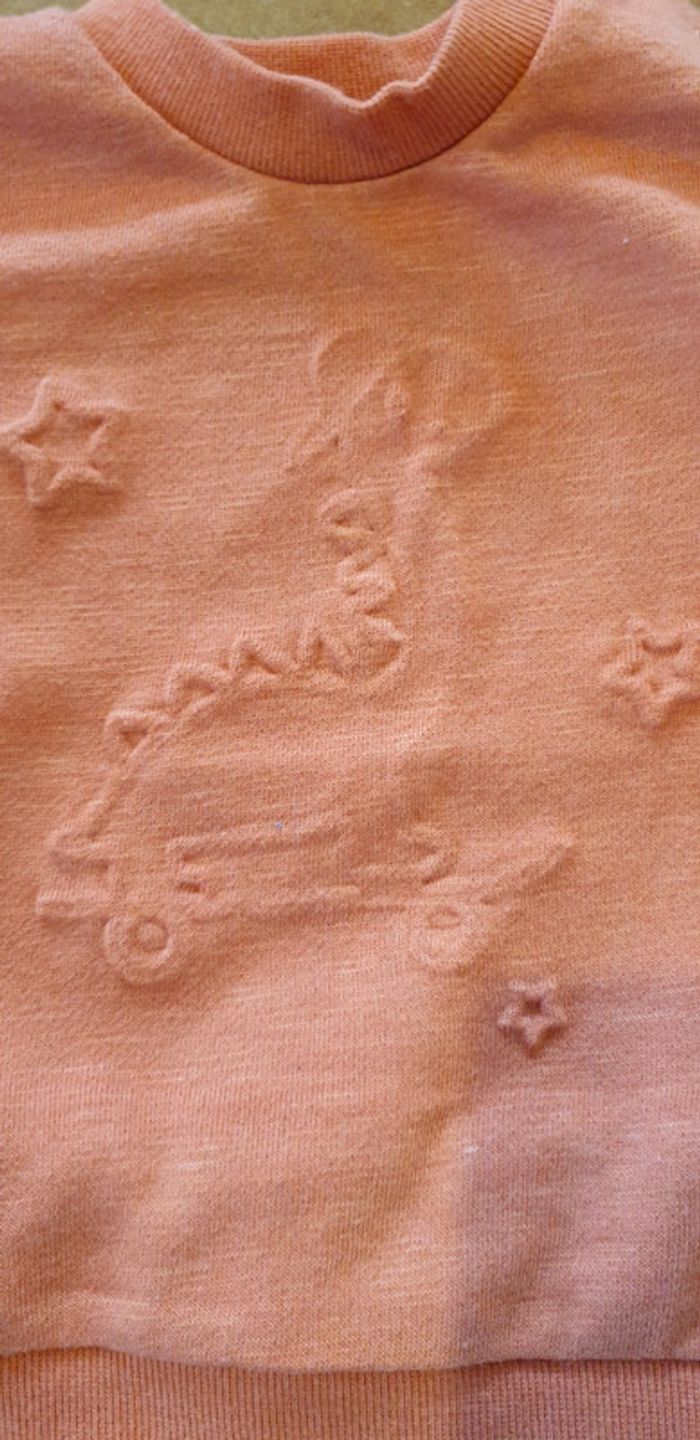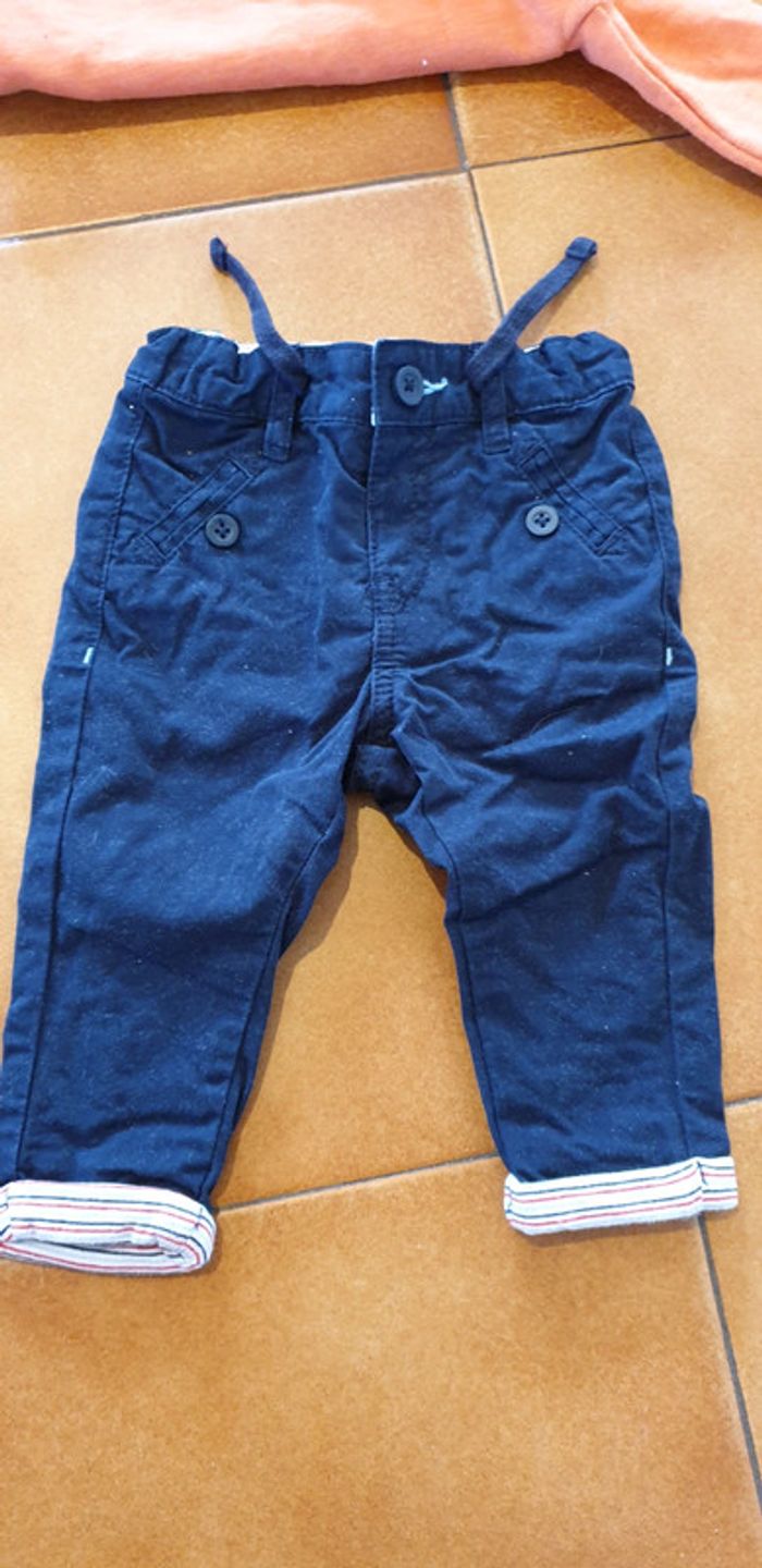 Ensemble pantalon bleu et pull orange En excellent état Taille 6 mois Pantalon kiabi Pull liberto