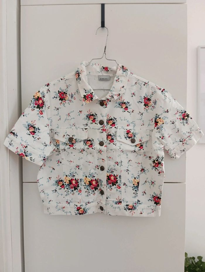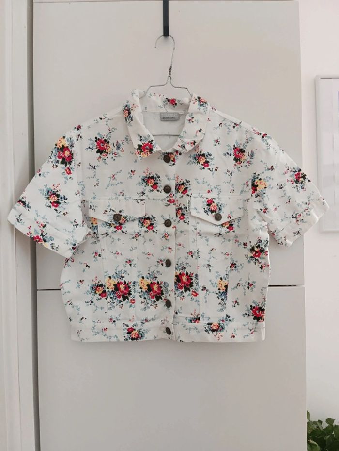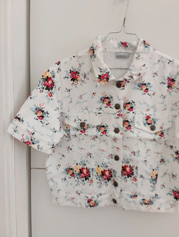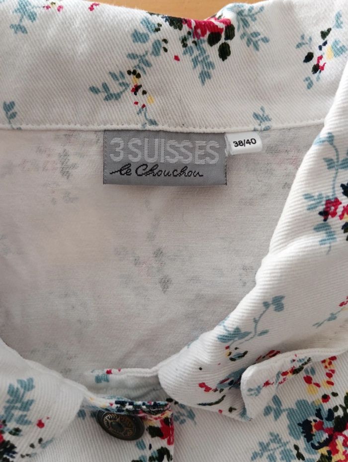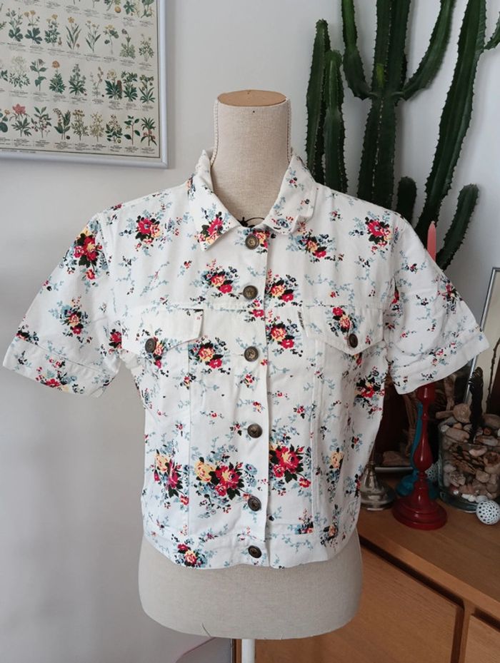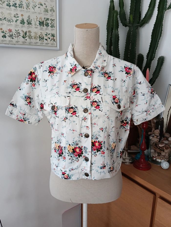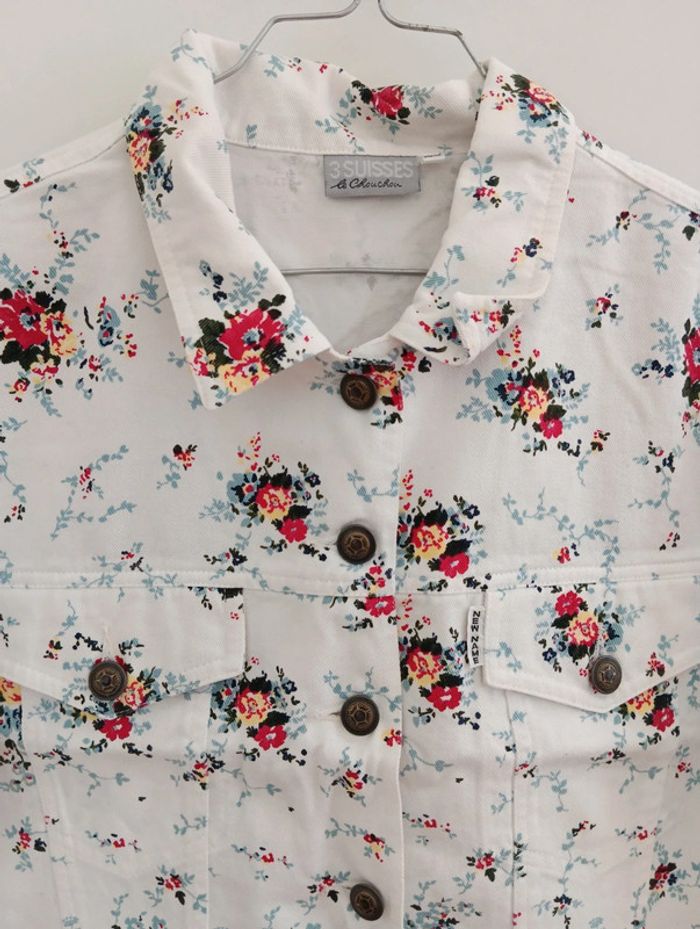 Veste vintage courte blanche à fleurs Années 90 -3 suisses le chouchou. 100% coton Fabriquée en Afrique du sud. Taille 38/40 mesures Épaules 43cm Aisselles 52cm Longueur 48cm