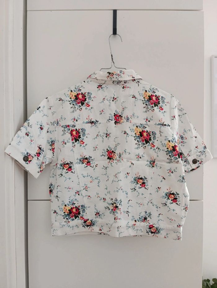 Veste vintage courte blanche à fleurs - photo numéro 1
