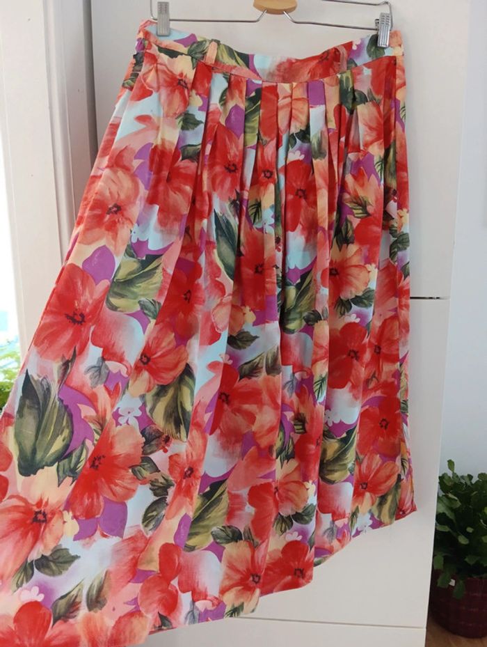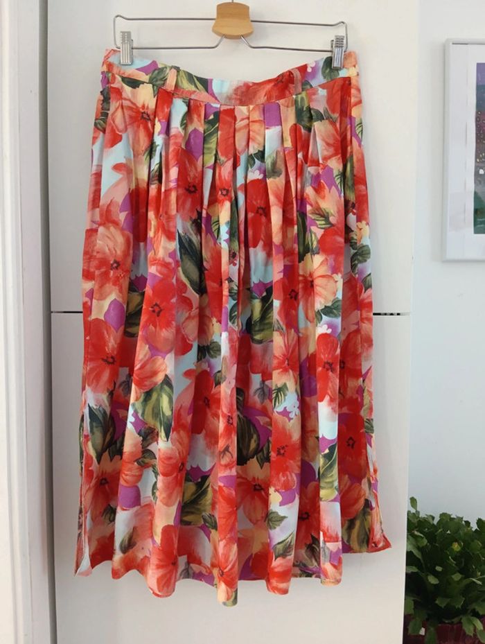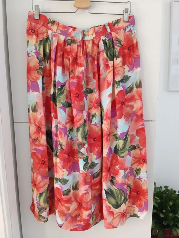 Jupe vintage midi  à fleurs en viscose - photo numéro 1