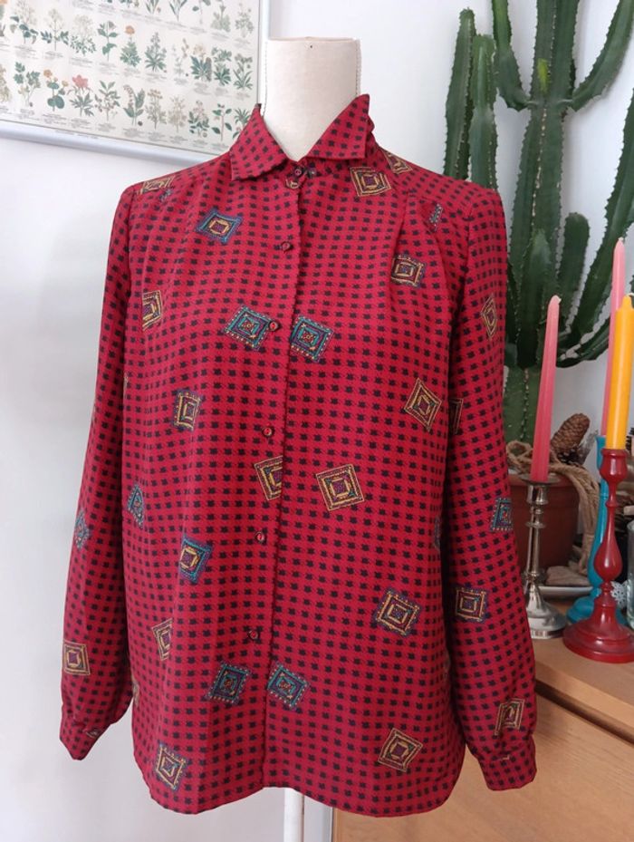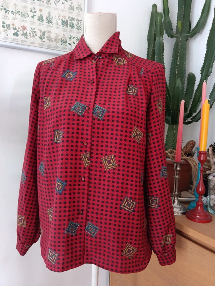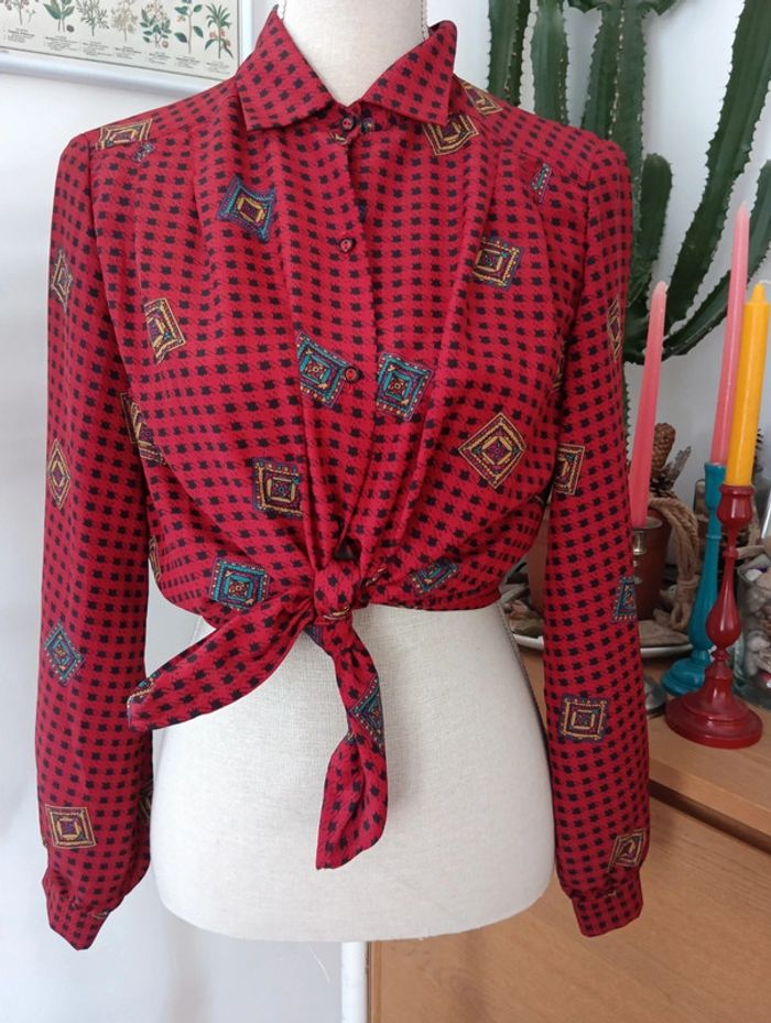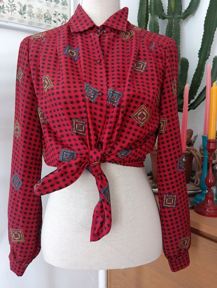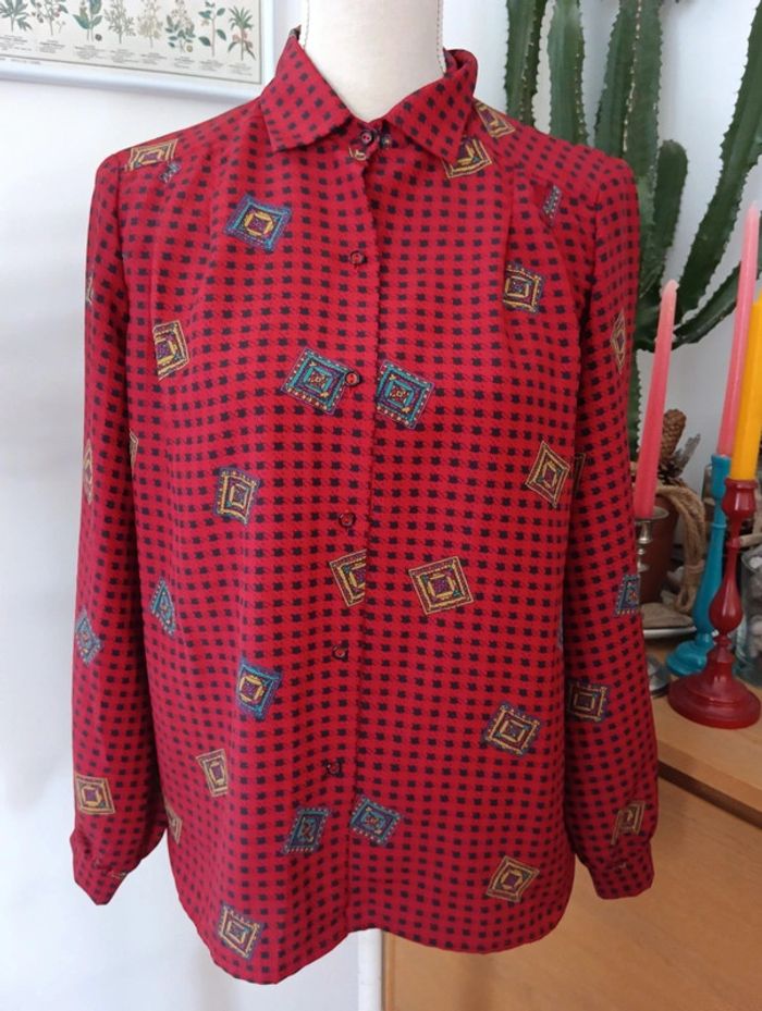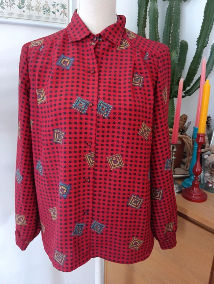 Chemise vintage voile légere pied de poule rouge / noire Brigitte saget made in France Taille 40 estimée à confirmer avec les mesures Mesures Epaules 40cm Aisselles 55cm Longueur 65cm