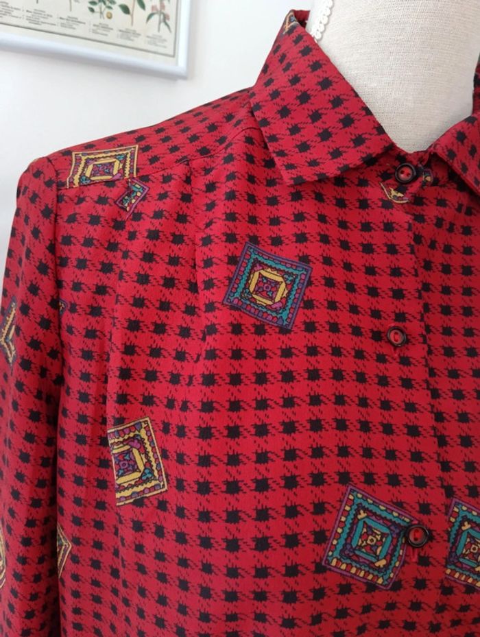 Chemise vintage voile légere pied de poule rouge / noir - photo numéro 9