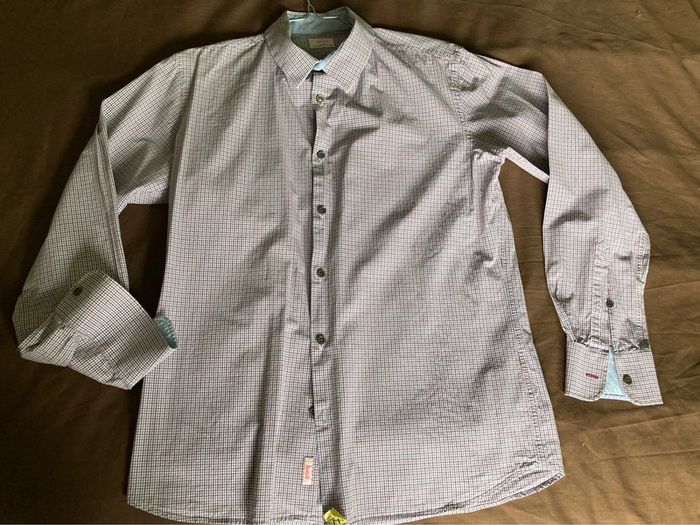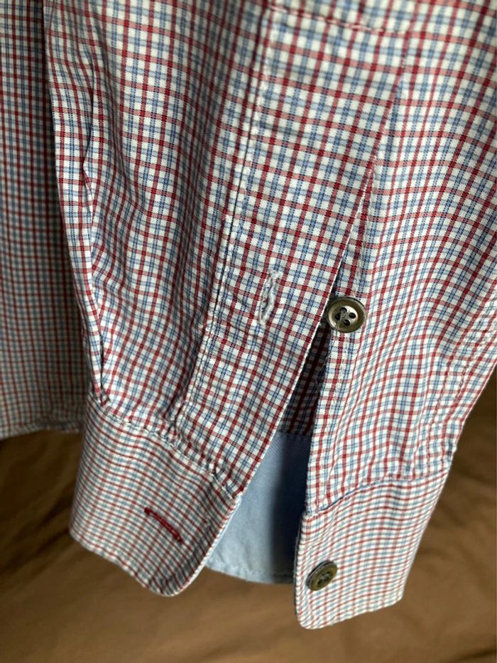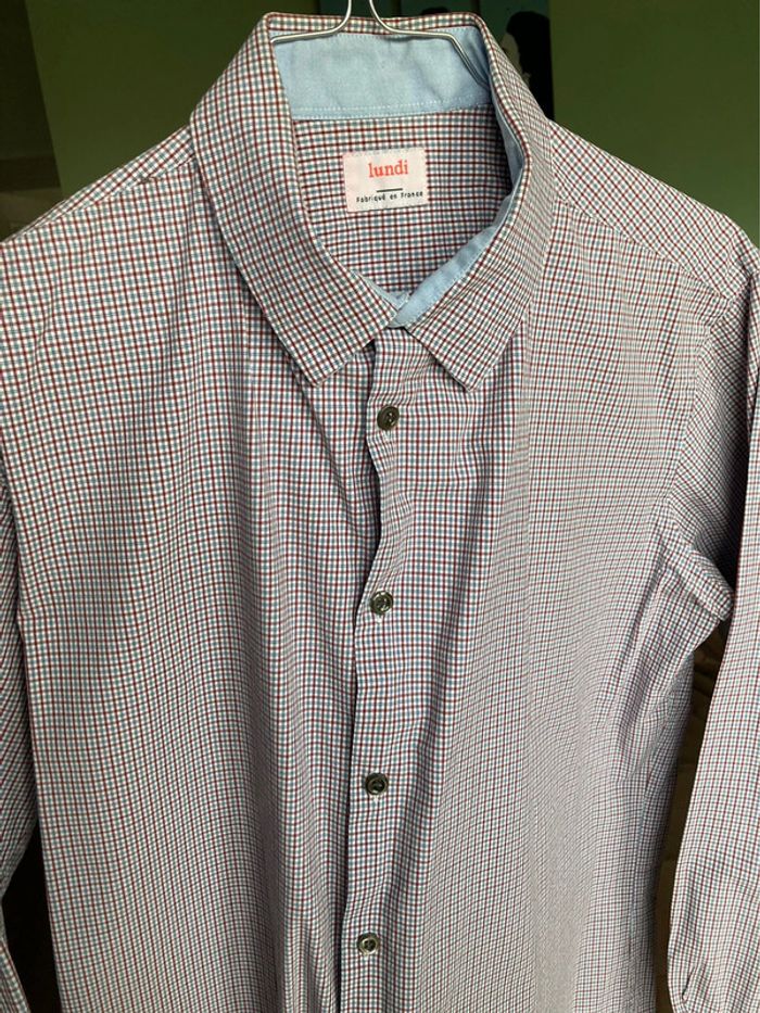 Bonjour, Je vends cette chemise rayée, couleur blanc, bleu, rouge, de la marque parisienne Lundi. Taille M. En très bon état, a été nettoyée au pressing. Prix : 10 euros. Possible remise en main propre sur Bagneux (metro Lucie Aubrac, li