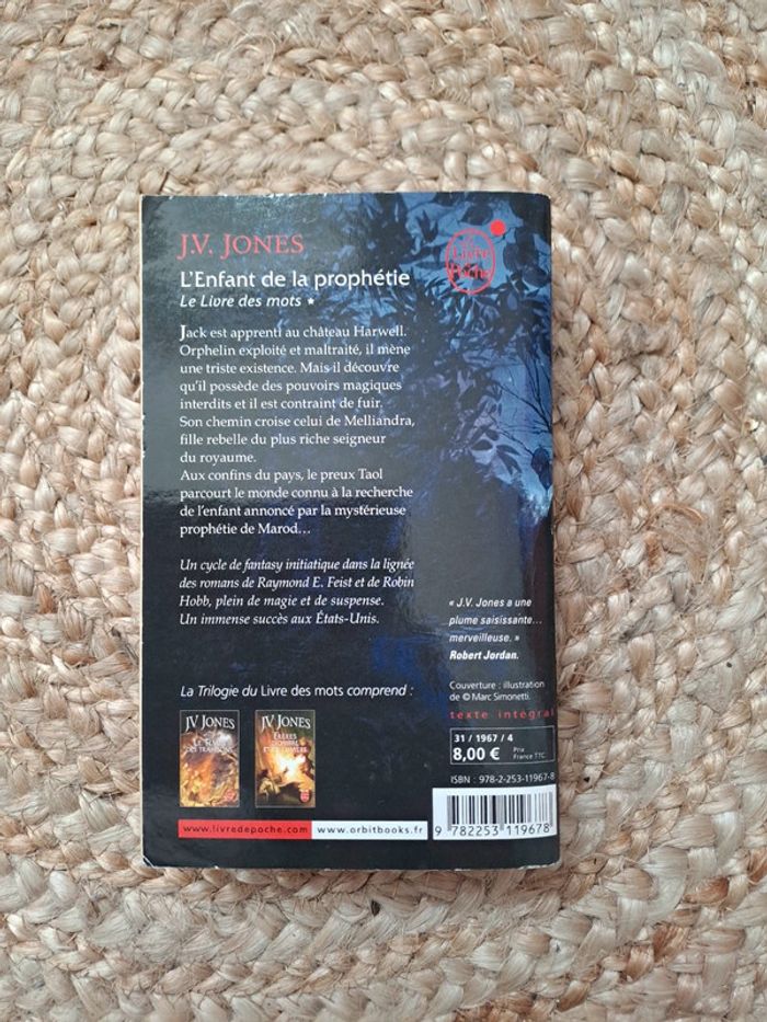 Livre de poche en bon état. L enfant de la prophétie, le livre des mots de J.V.Jones Genre fantastique Pour voir mes autres annonces tapez #jessiemathildelivres
