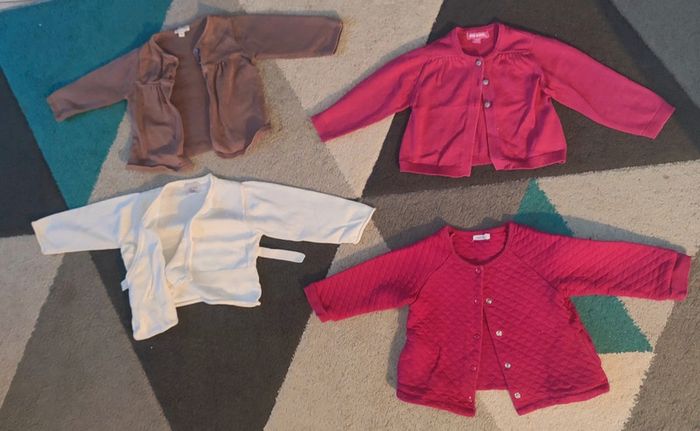 Bonjour, je vends ce lot de 4 gilets bébé fille. • Taille : 18 mois • Marque : Mila Blue / Kimbaloo / Pikouic / Bout'chou • État : très bon état • Couleur : multicolore N'hésitez pas à faire un lot (prix en réduction). 📉 Envoie rapide et soigné (de préférence Mondial Relay ⚠️). 📦 Pour de plus amples informations, envoyez-moi un message privé sans hésiter. 😁