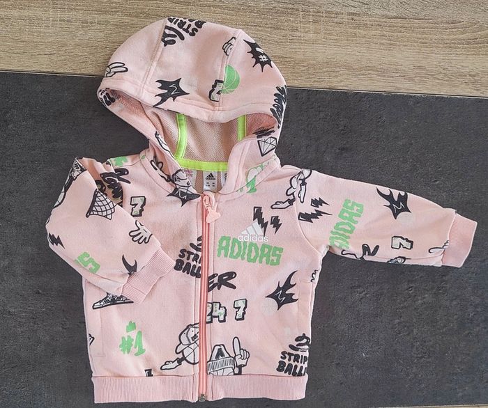 Bonjour, je vends cet ensemble de jogging bébé fille, composé d'une veste zippée et d'un pantalon. • Taille : 3 mois • Marque : Adidas • État : très bon état • Couleur : gris / rose pâle / noir / vert N'hésitez pas à faire un lot (prix en réduction). 📉 Envoie rapide et soigné (de préférence Mondial Relay ⚠️). 📦 Pour de plus amples informations, envoyez-moi un message privé sans hésiter. 😁