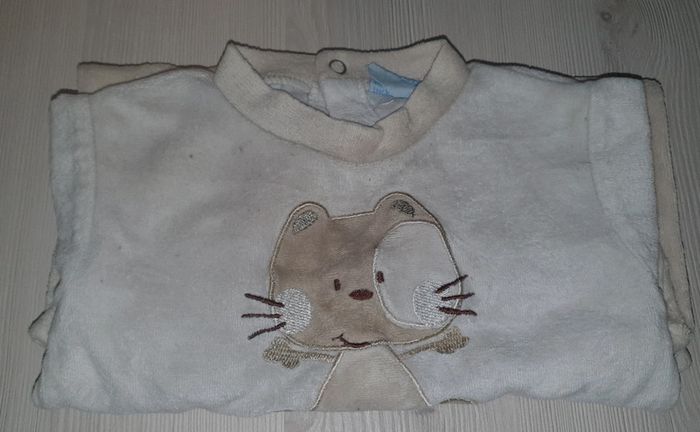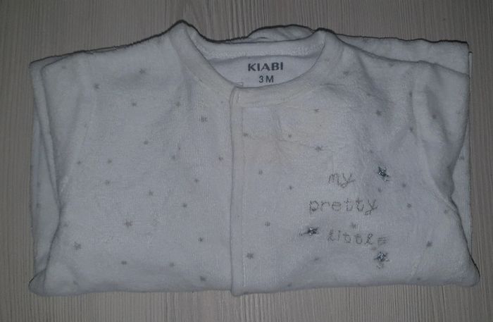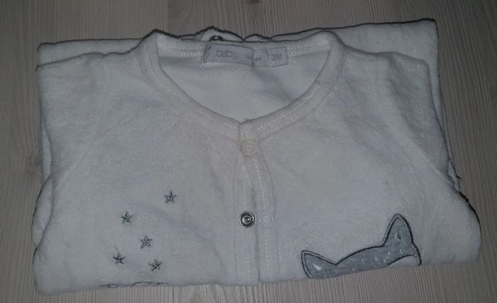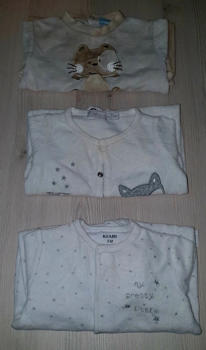 Bonjour, je vends ce lot de 3 pyjamas velours bébé mixte. • Taille : 3 mois • Marque : Kiabi / Gémo / King Bear • État : très bon état général (porte de légères traces d'usures). • Couleur : blanc / gris / beige N'hésitez pas à faire un lot (prix en réduction). 📉 Envoie rapide et soigné (de préférence Mondial Relay ⚠️). 📦 Pour de plus amples informations, envoyez-moi un message privé sans hésiter. 😁